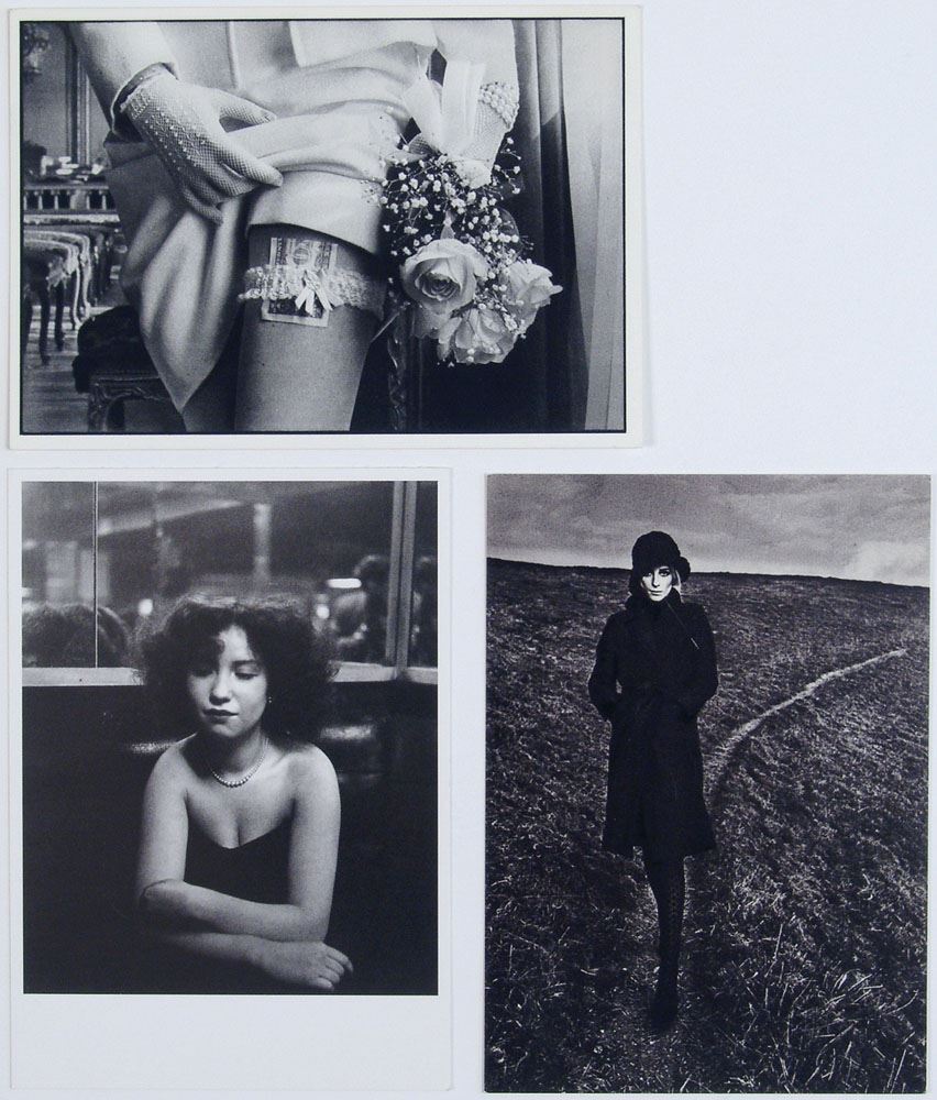 This is a lot of three vintage (probably 1970s) postcards, all printed in France. Titles are La Mariee, Mademoiselle Anita/Paris 1951, and Portrait d'Une Dame en Noir (1964). SIZE: Approx. 4" x 6" each. **MORE postcards from 1950s to 1990s (risque, nude, art sci-fi, oddities) in this and future auctions. From the estate of a big collector who traveled the world and had some very scare paper items. Many postcards from small independent underground printers in Germany, Holland, France, UK, etc.