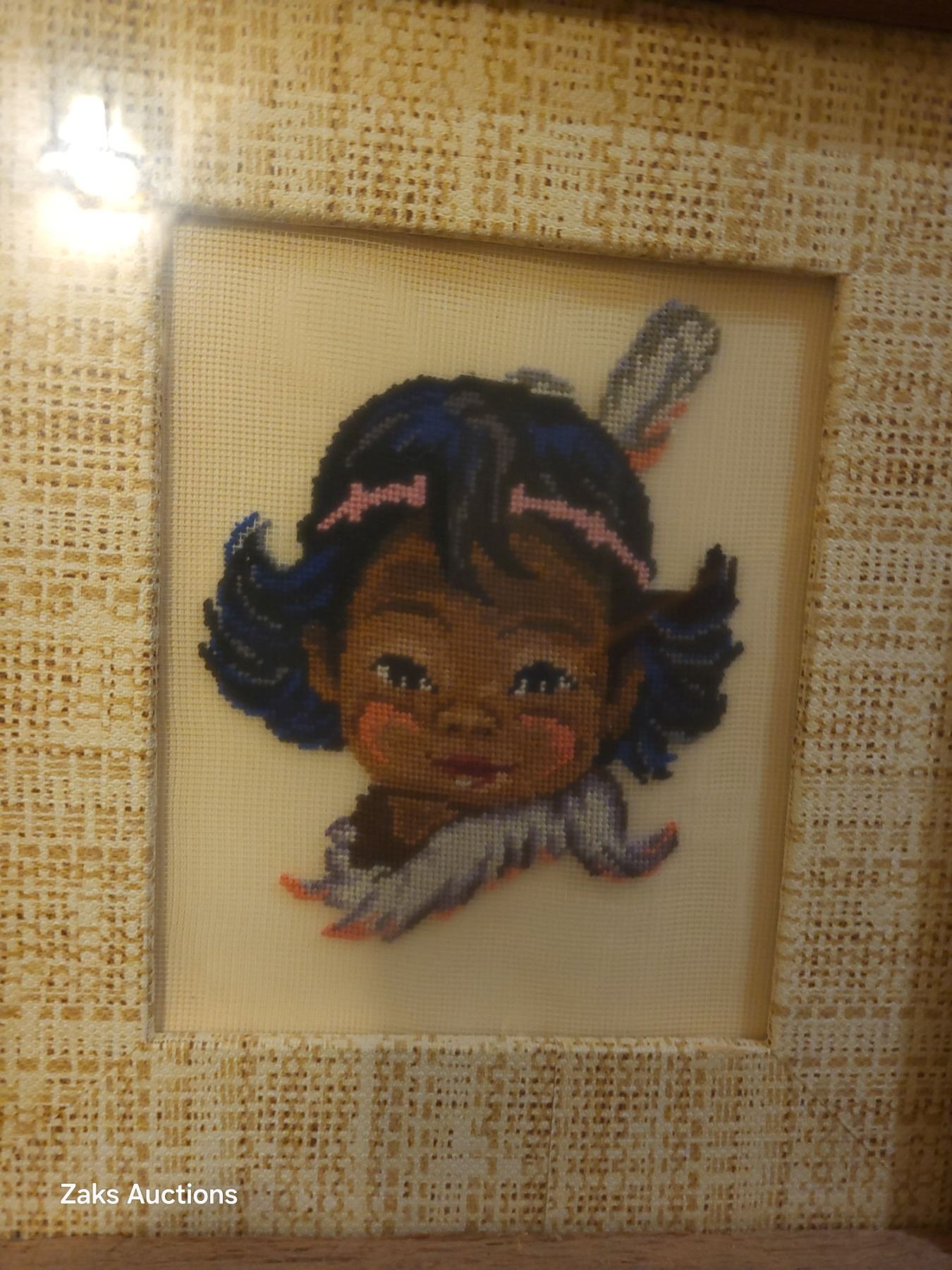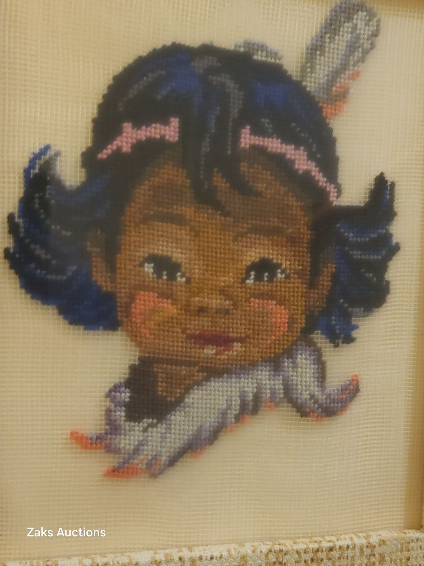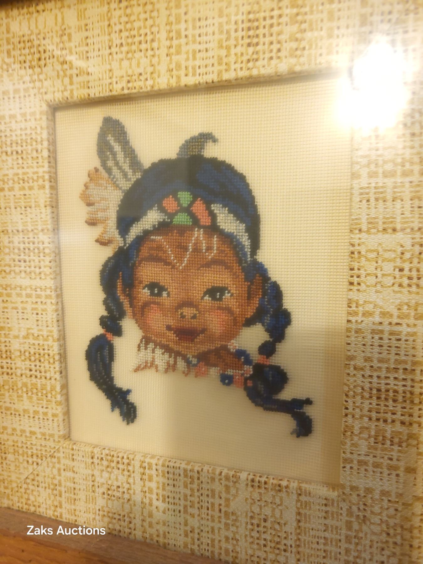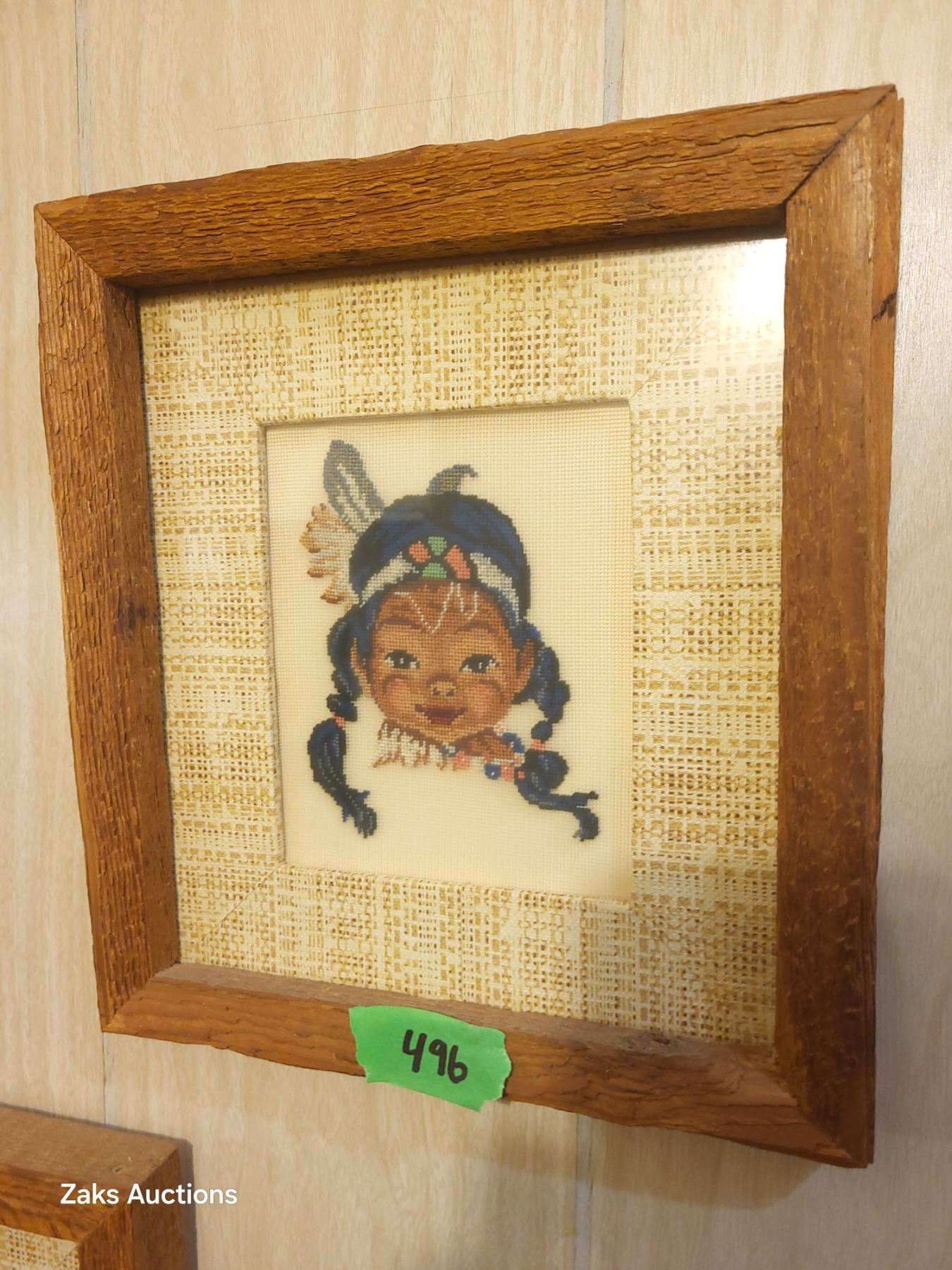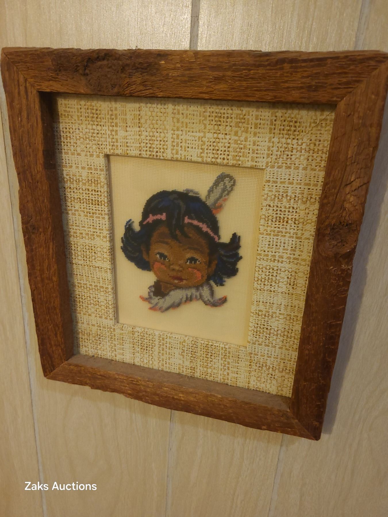 Lot of 3 Vintage Needlepoint Indigineous Framed Pictures