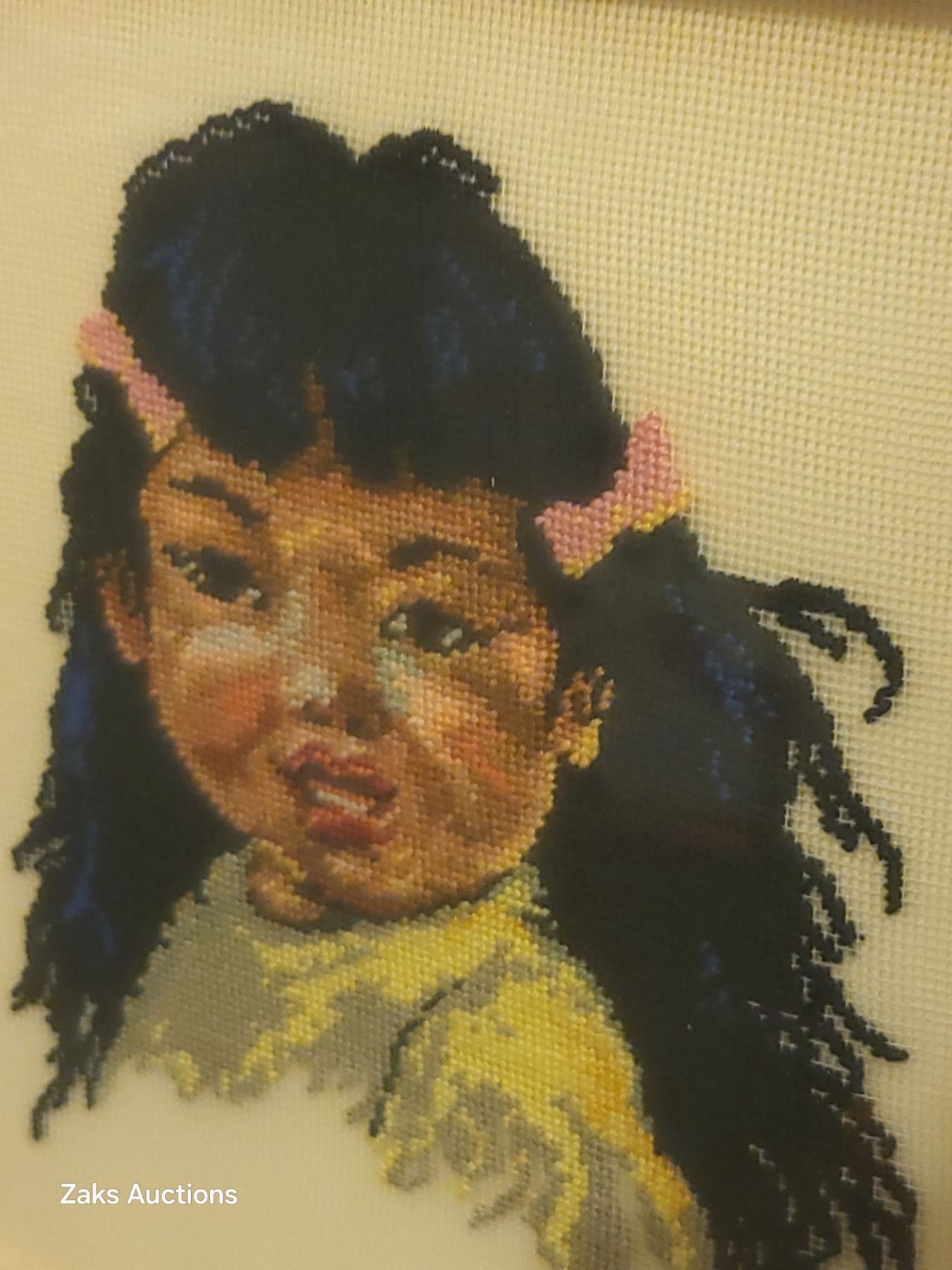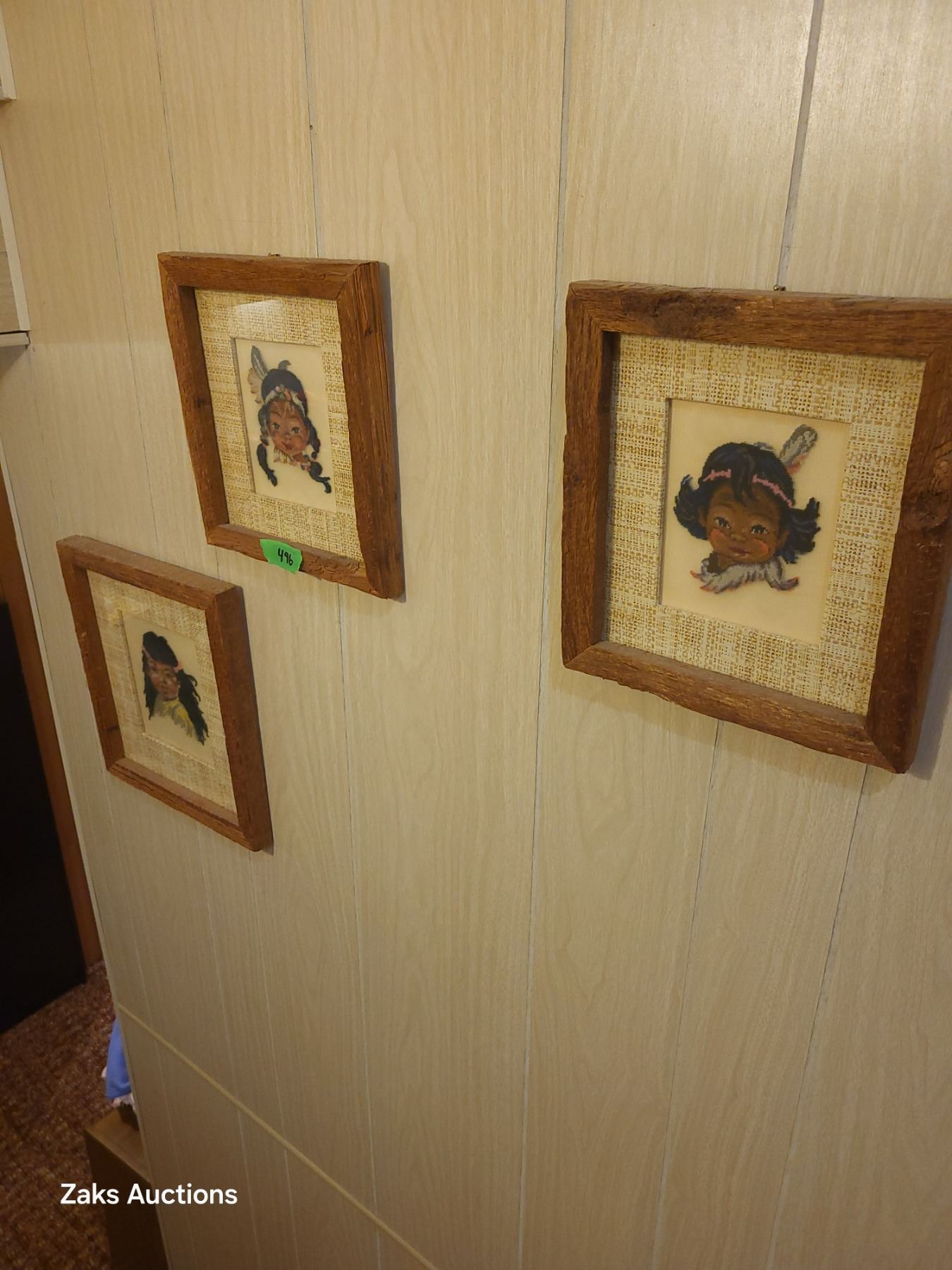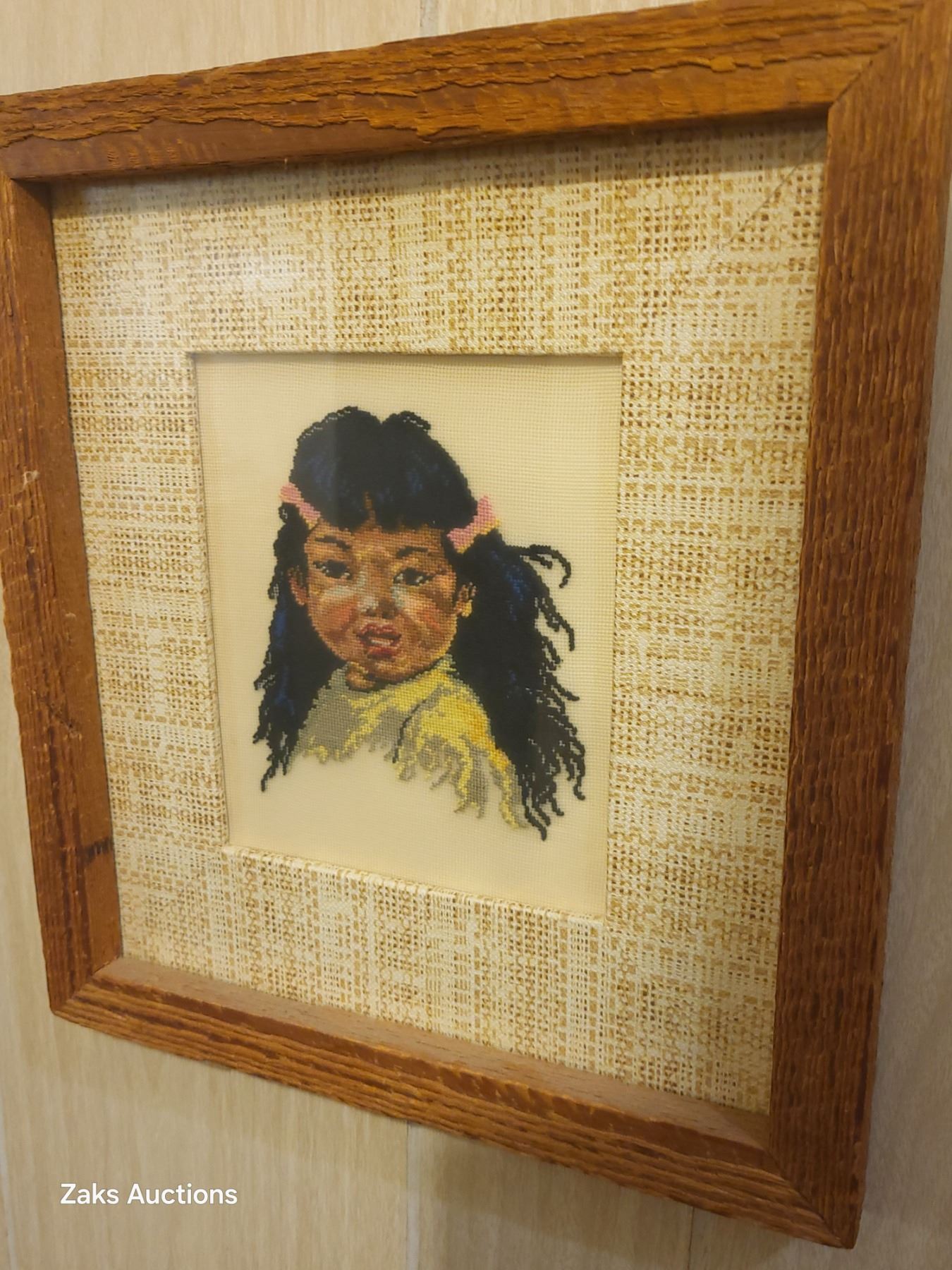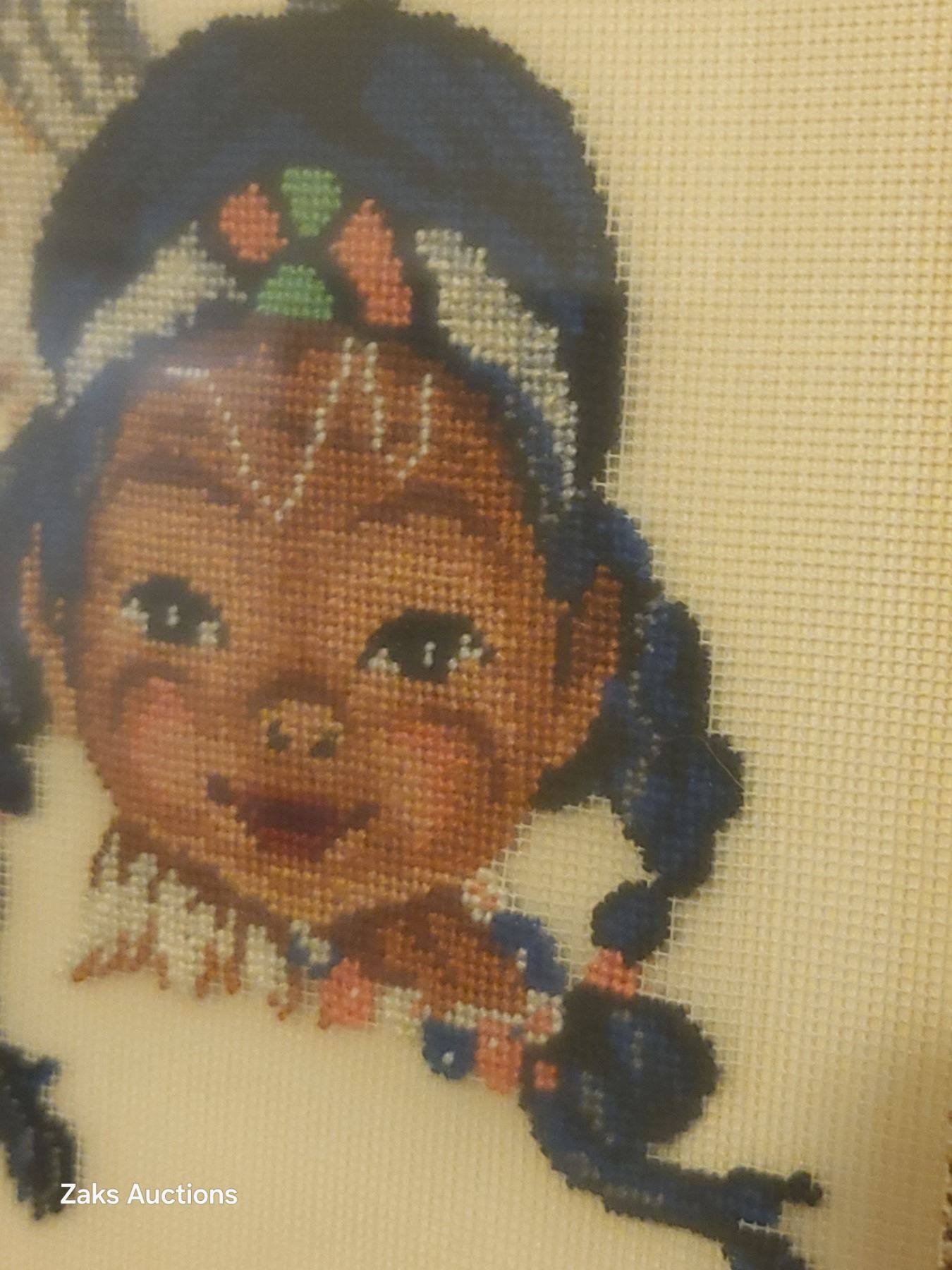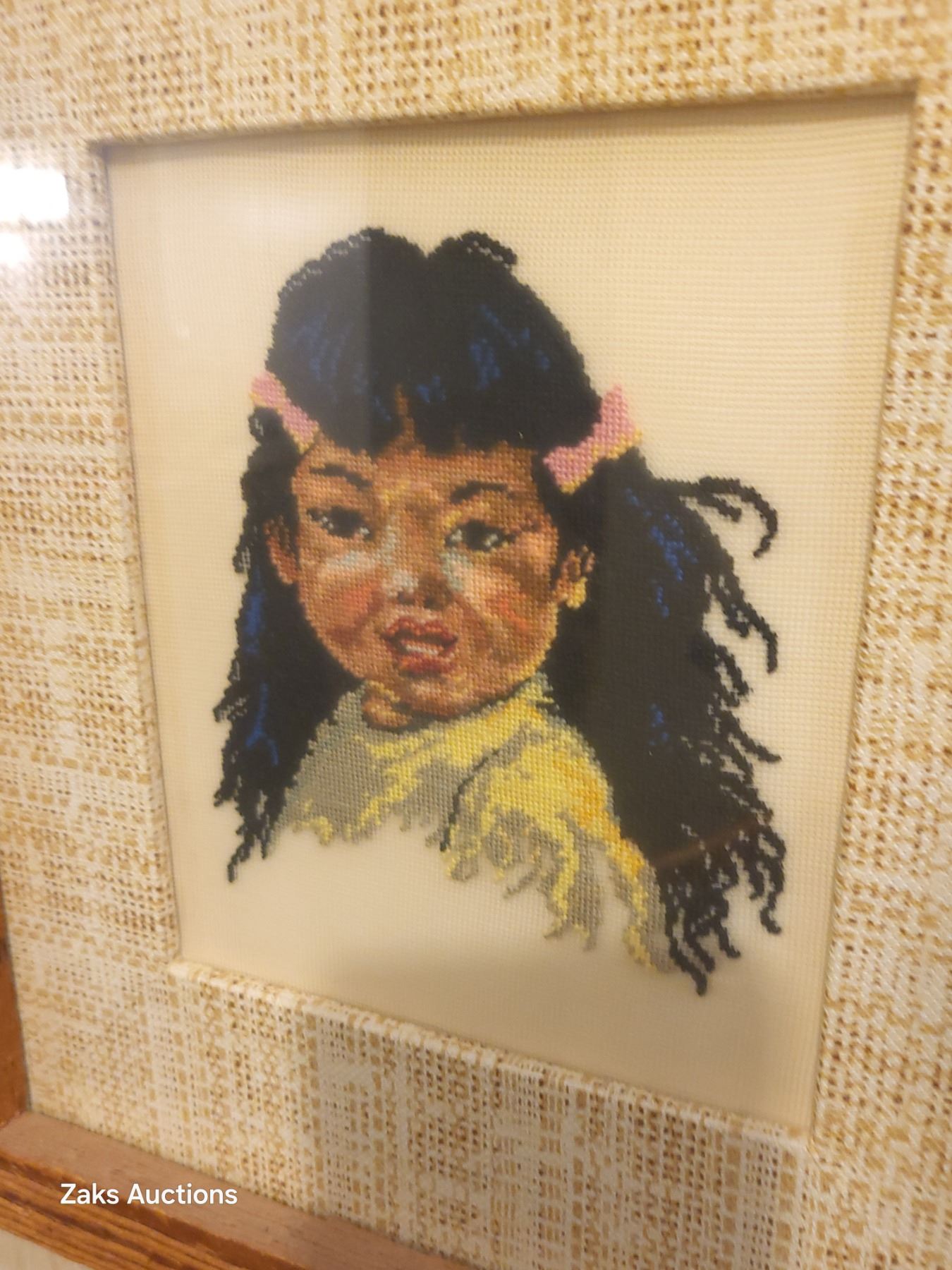 Lot of 3 Vintage Needlepoint Indigineous Framed Pictures