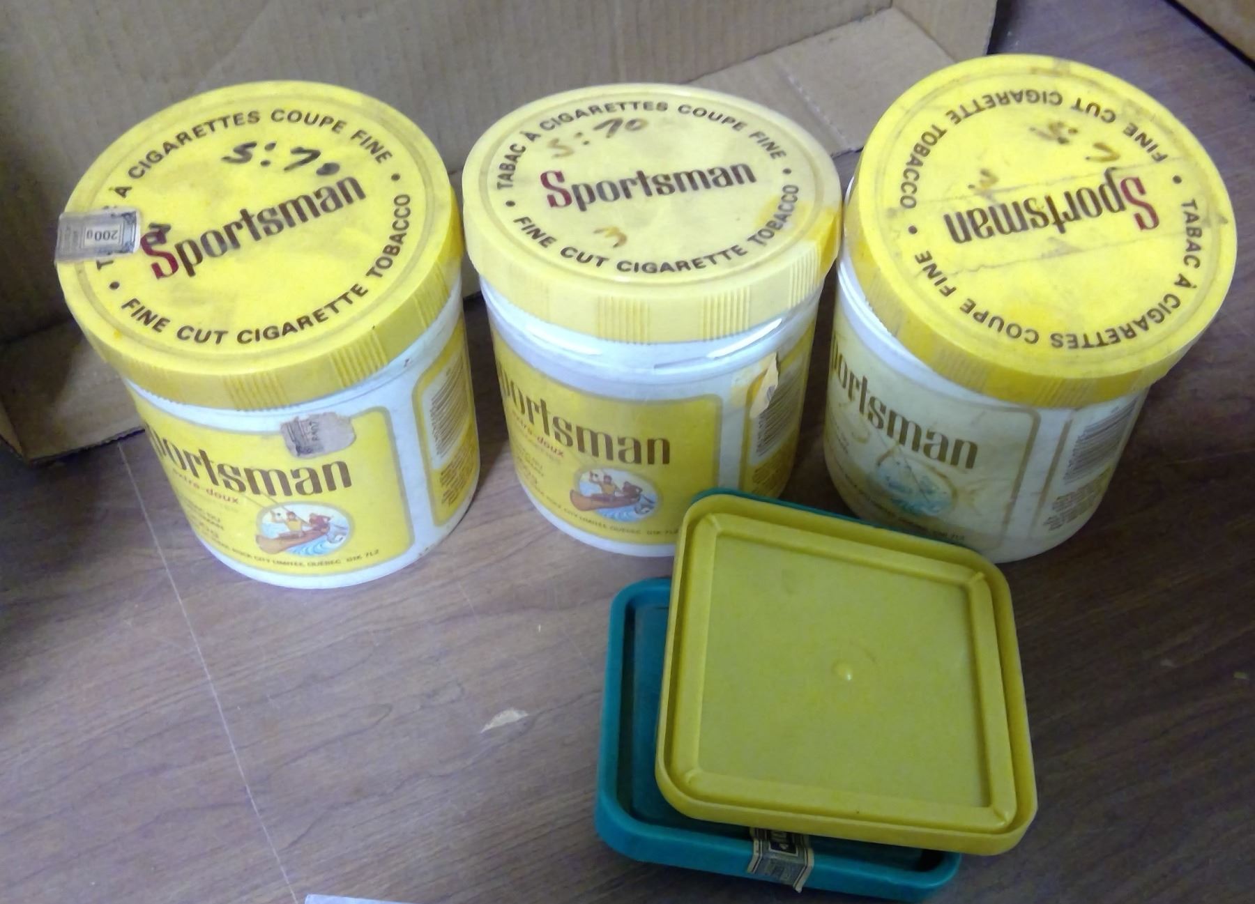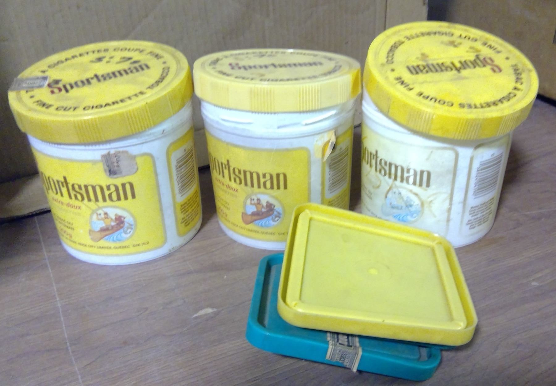 Lot of 3 Vintage Plastic Tobacco Tubs & Assorted Lids