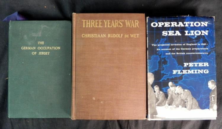 Available is a lot of 3 WWII British Hardcover Books. They are all in good condition. The books are as follows:Three Years' War, Christiaan Rudolf de Wet - 1902The German Occupation of Jersey - 1946Operation Sea Lion, Peter Fleming - 1957