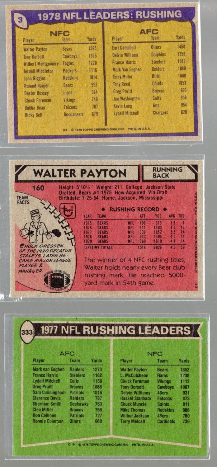 Lot of 3 Walter Payton Cards with Earl Campbell Also on One