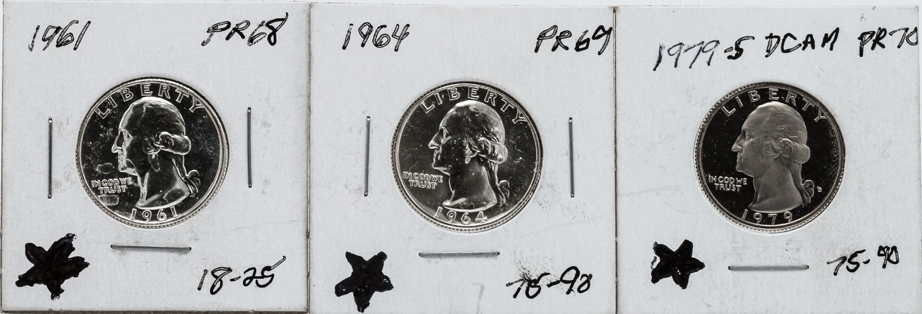 One Lot of (3) Washington Proof Quarters. (1) 1961, 1964, and 1979-S Washington Proof Quarters.