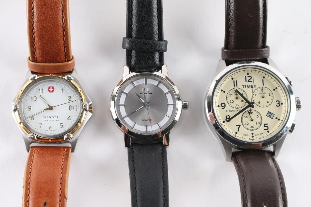 Includes:Timex Chronograph, Wenger Swiss, and Honda Quartz.