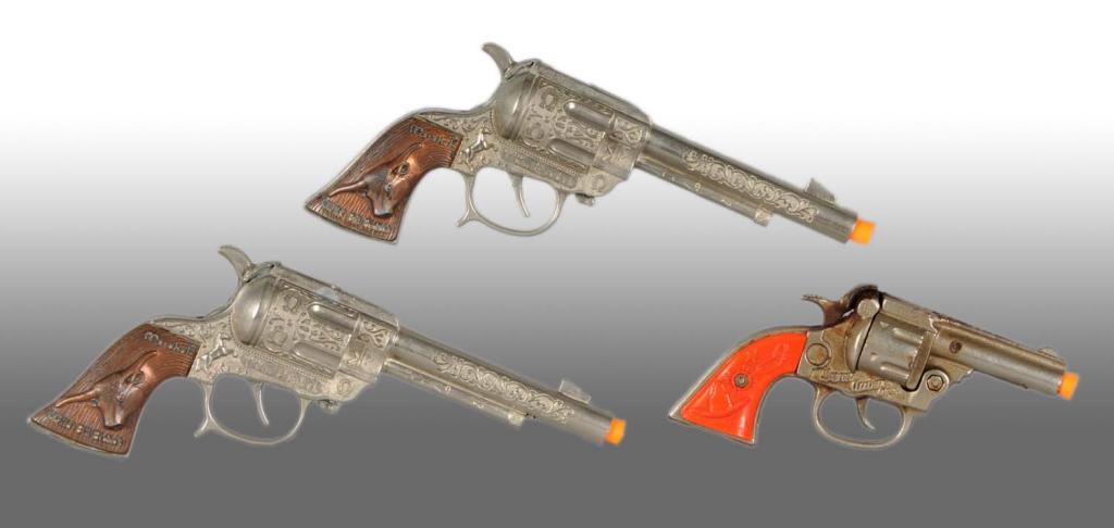 All are working. Includes two Wild Bill Hickok Marshalls and one Gene Autry with some pitting and rust on barrel. Cap Gun Condition (Very Good). Size Largest: 9 - 1/2" L.
