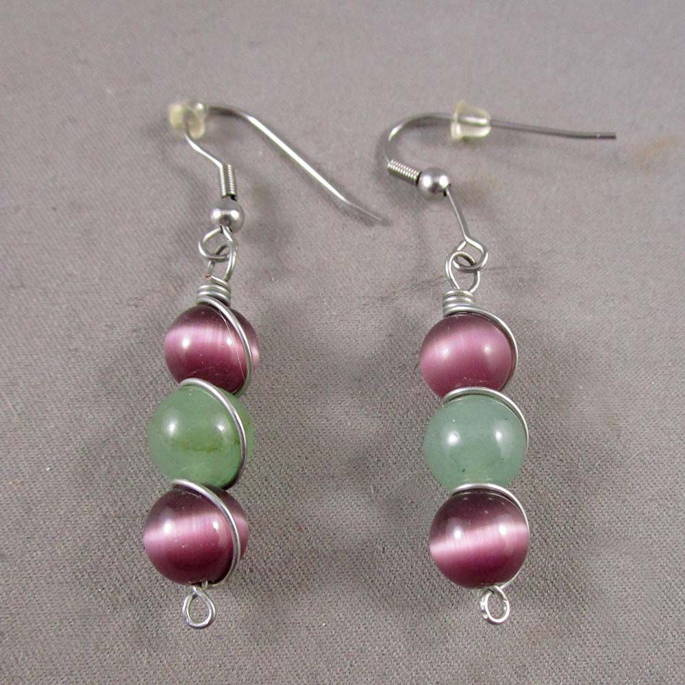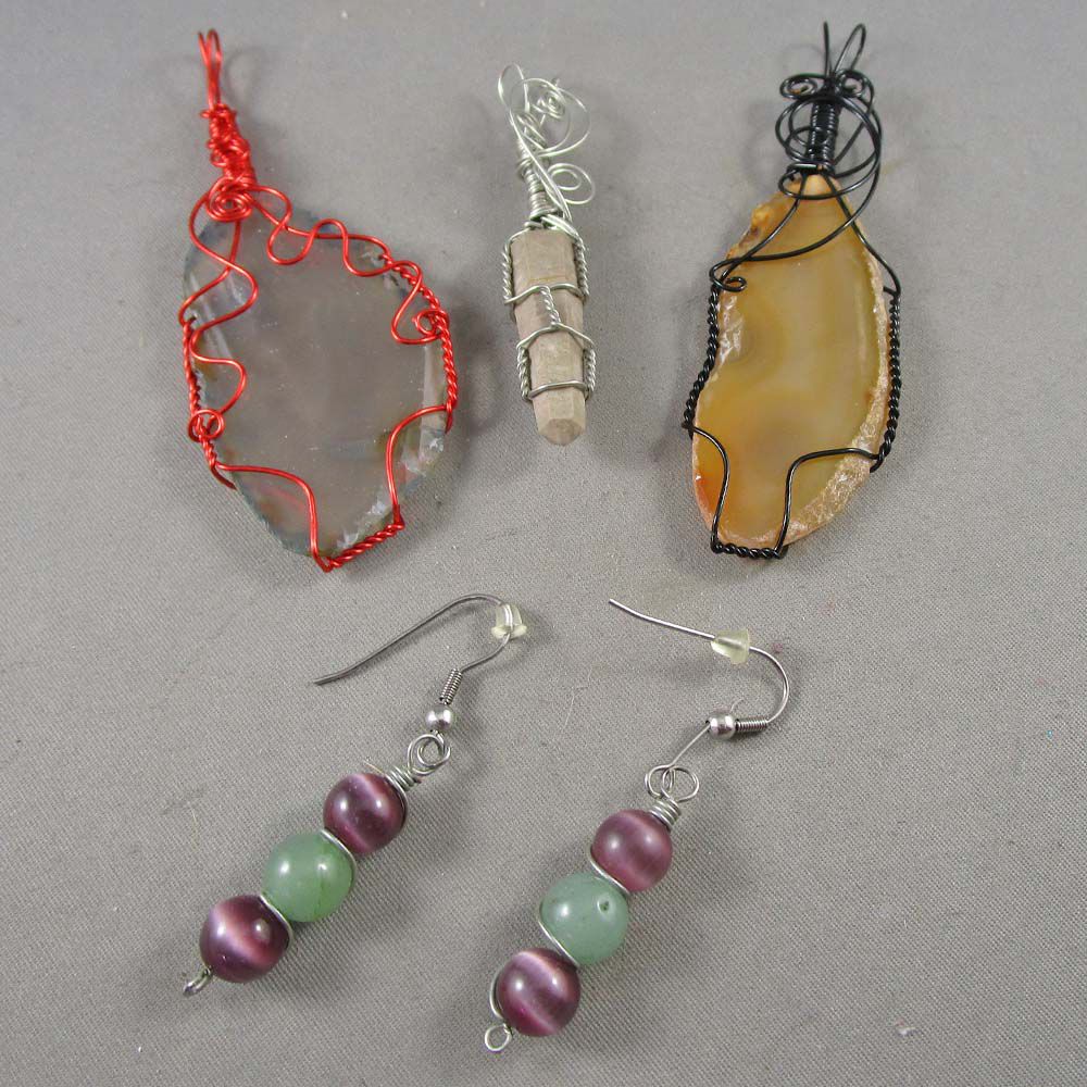 Lot of 3 Wire Wrapped Gemstone Pendants & Earrings - Agate, Sandstone, Aventurine, Cats Eye