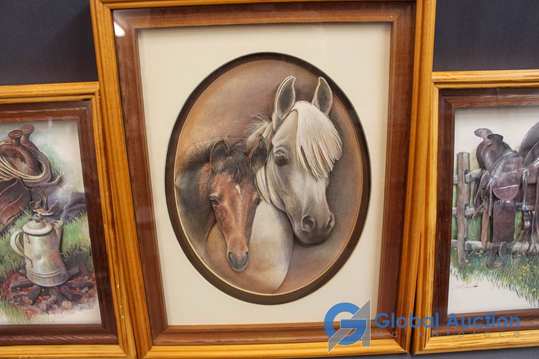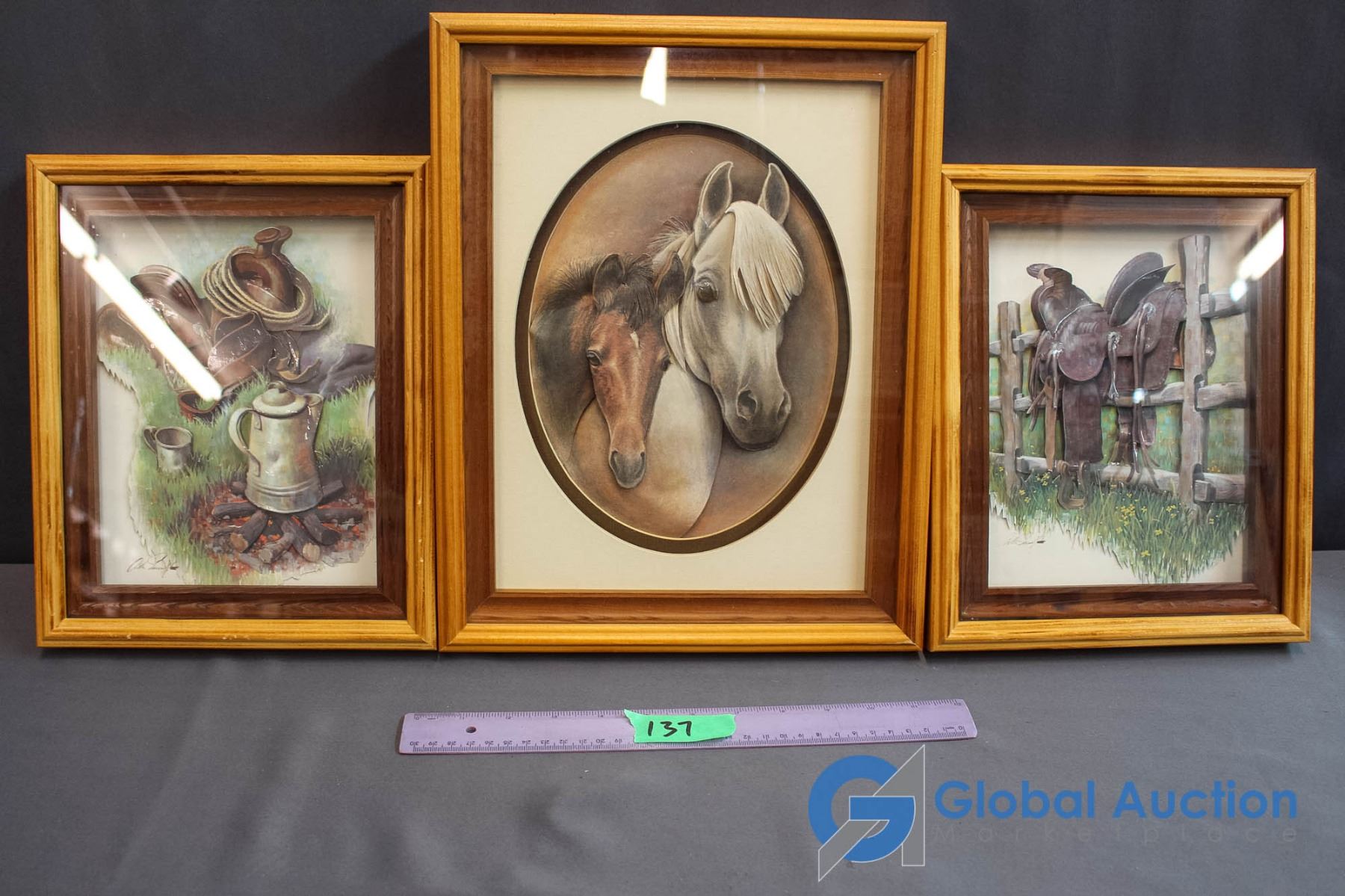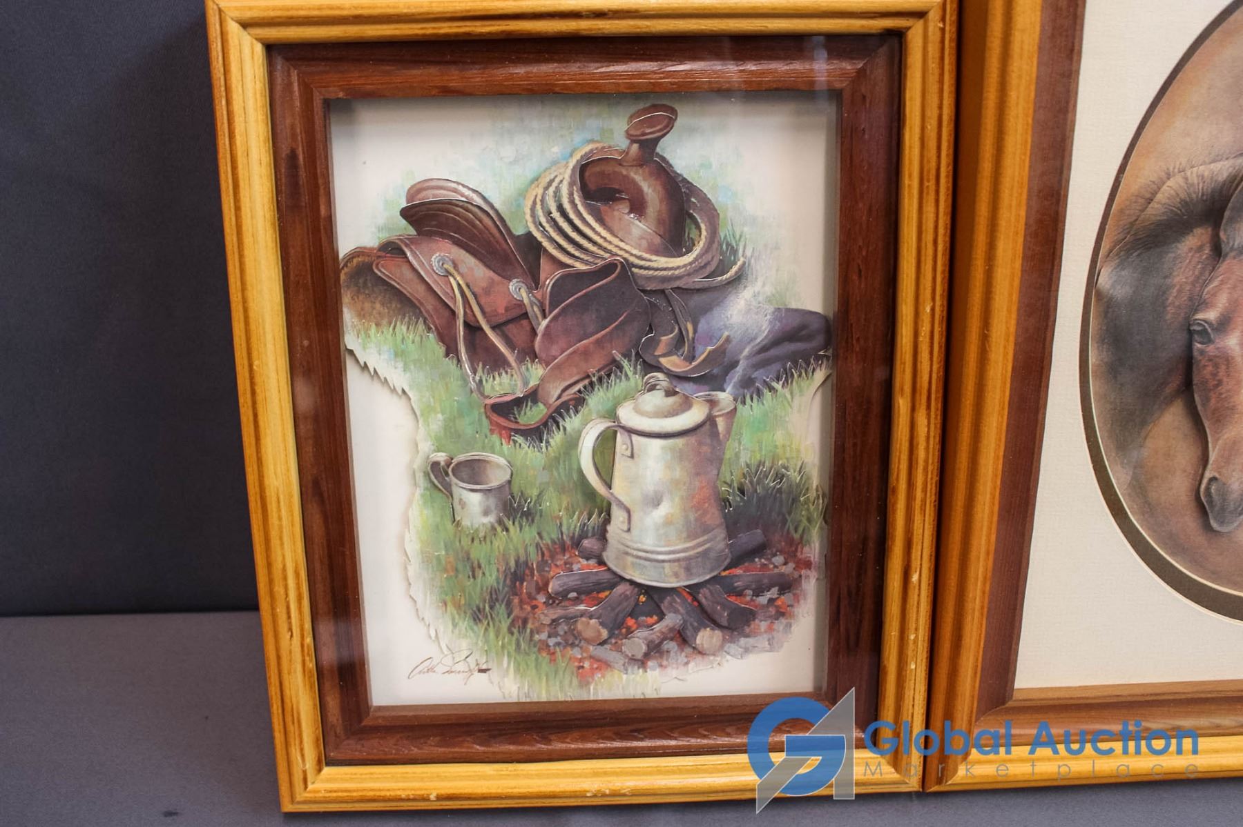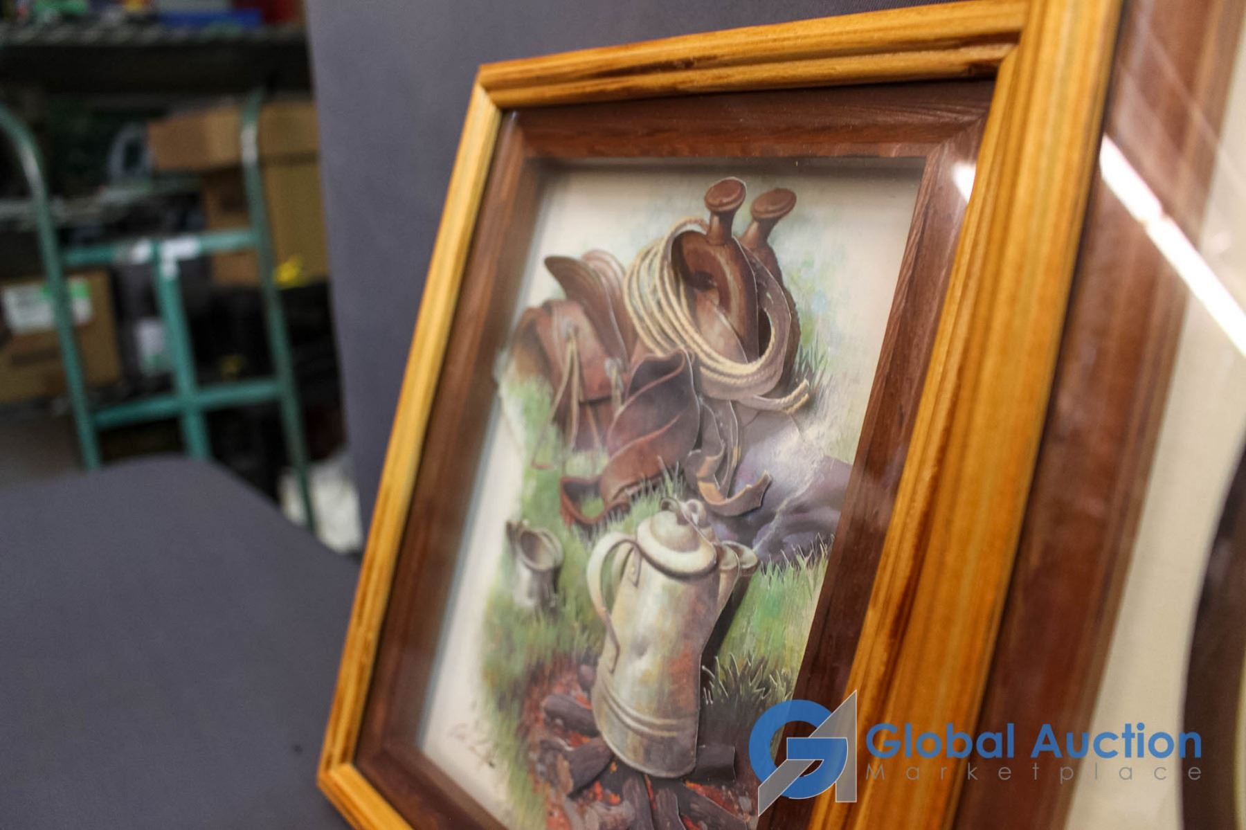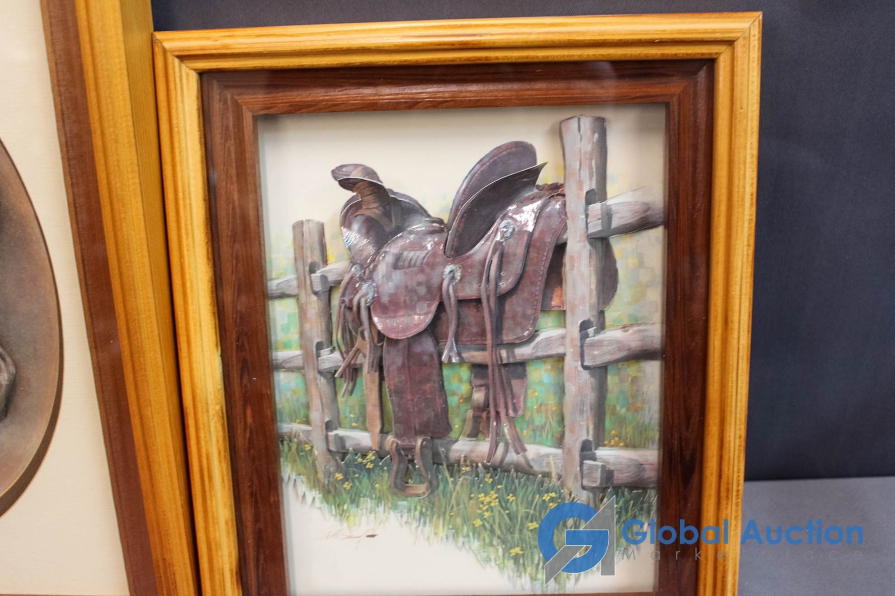 Lot of 3 Wooden Framed Western 3D Wall Hangings