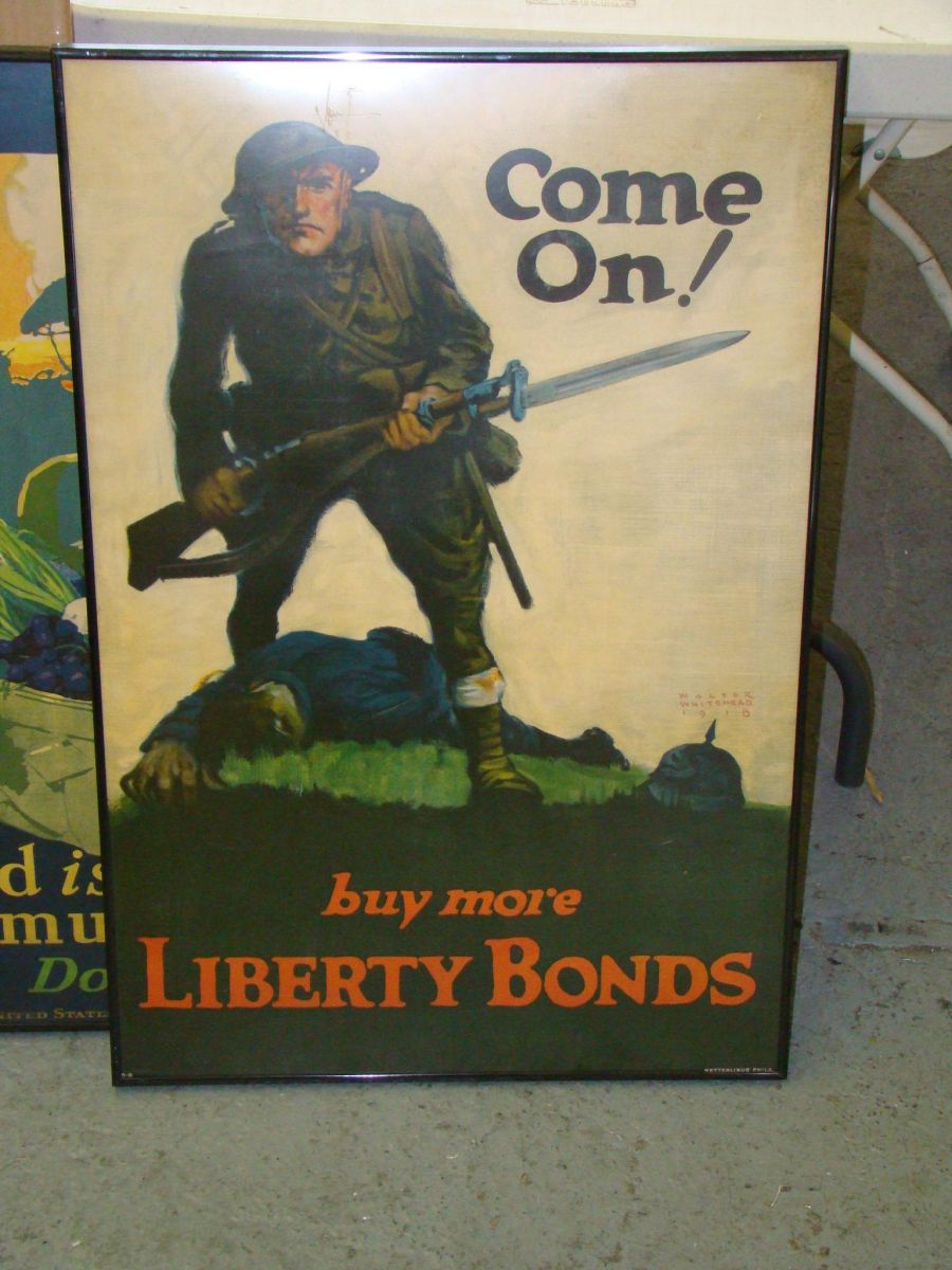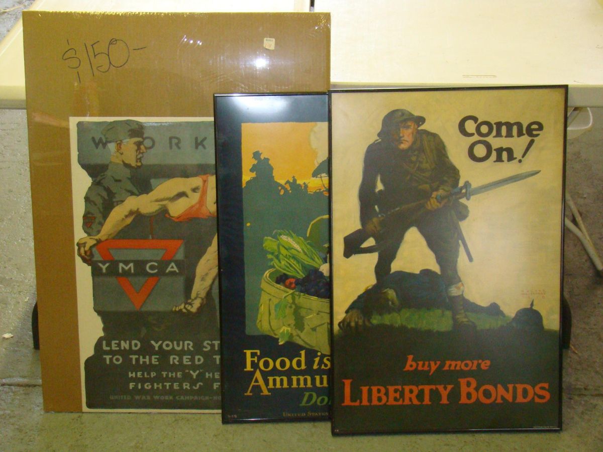 includes "Food is Ammunition - Don't Waste it" by John E. Sheridan, "Come On!...Buy More LIberty Bonds" by Walter Whitehead, and "Workers Lend Your Strength" by Gil Spear.