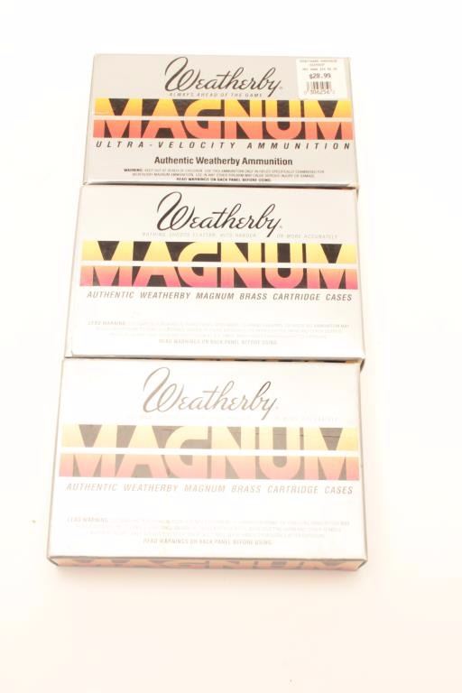 Lot of 3 boxes of Weatherby .224 Magnum caliber brass. Est.: $50-$75.