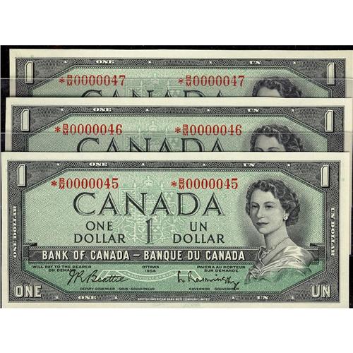 Lot of 3 consecutive "LOW" numbered notes; BC-37bA-i 1954 $1 *B/M0000045 to 0000047. All Choice Unc. Very scarce