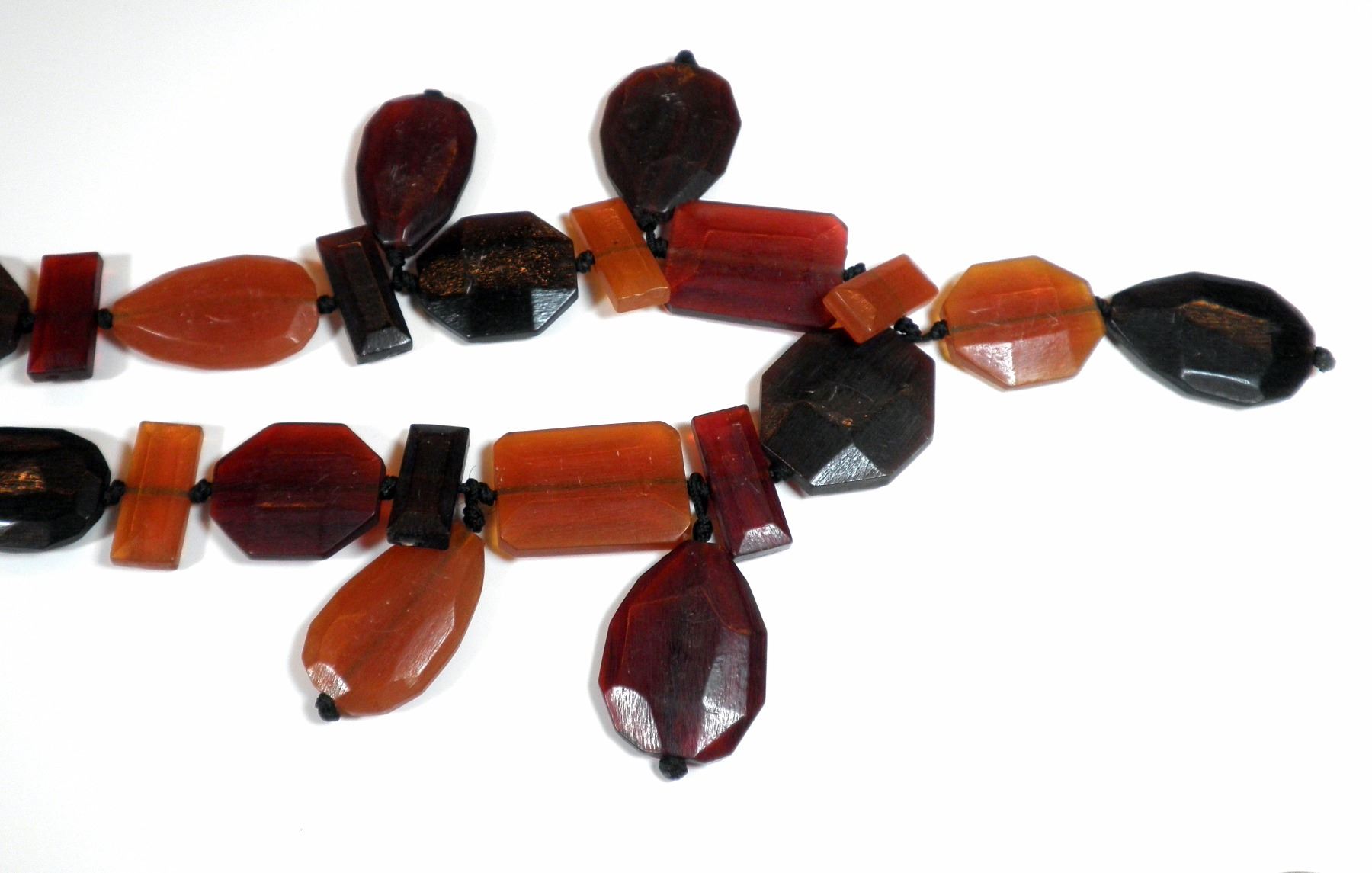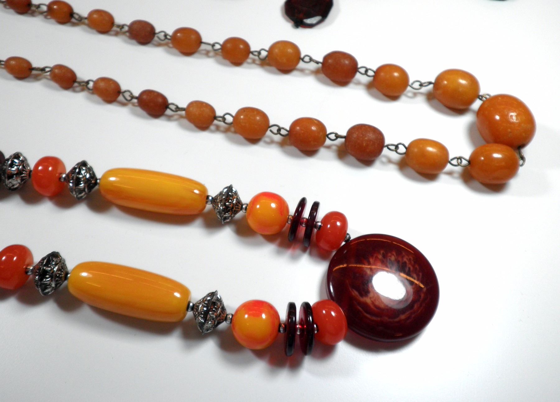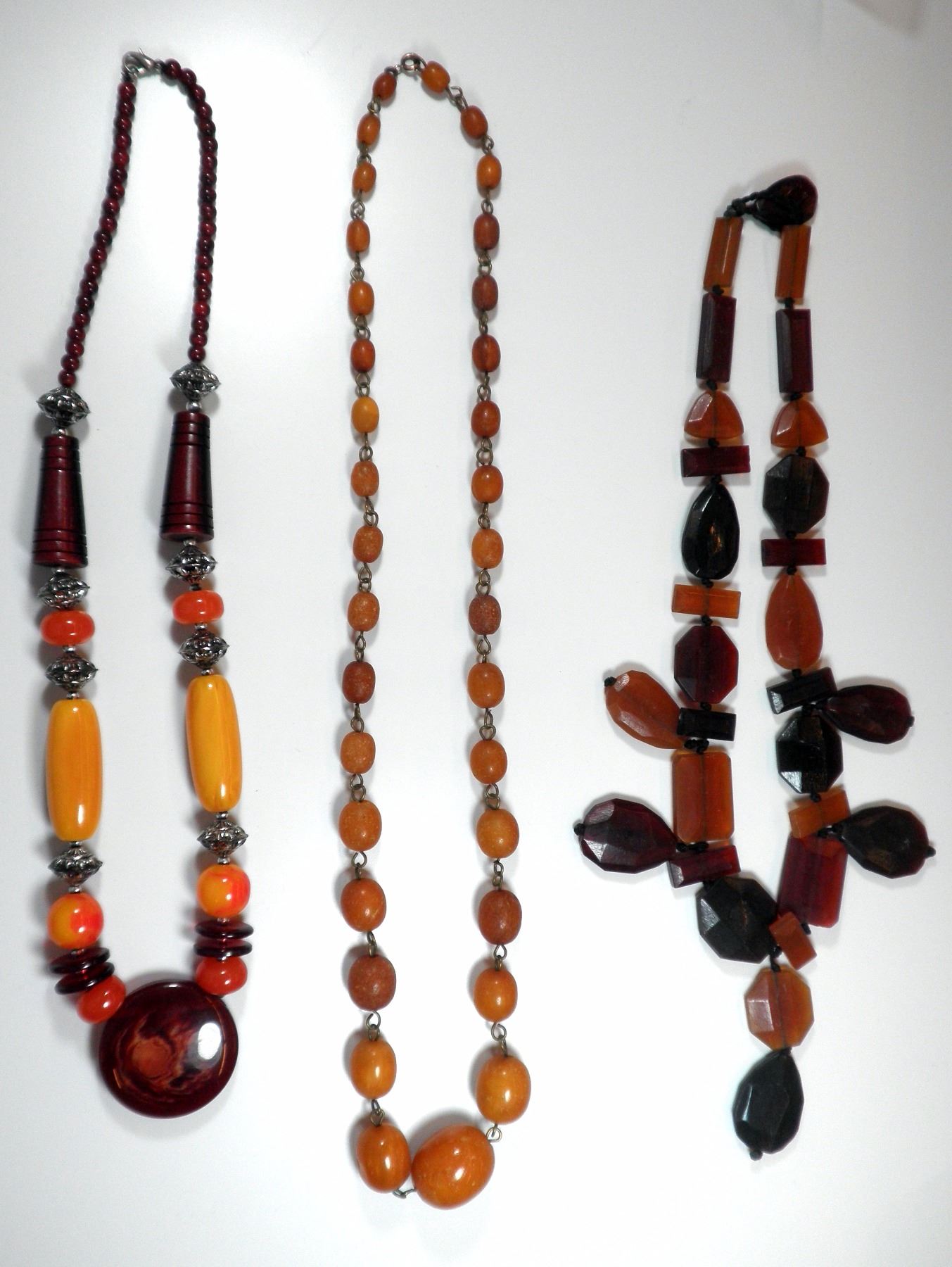 Lot of 3 necklaces with amber beads in different shades, one could be with compressed ambers, length: 50-76 cm.