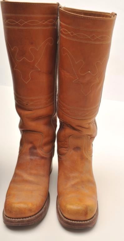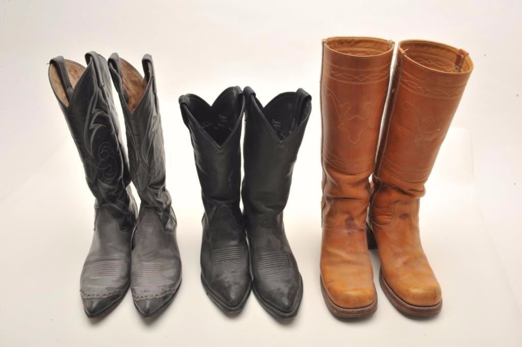 Lot of 3 pair of ladies cowboy boots including a pair of Frye hightops, size 7.5 B; a pair of Tony Lama, size 9 M and another pair of Tony Lama, size 7.5 B. Est.: $150-$300.