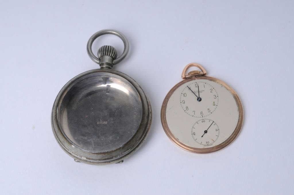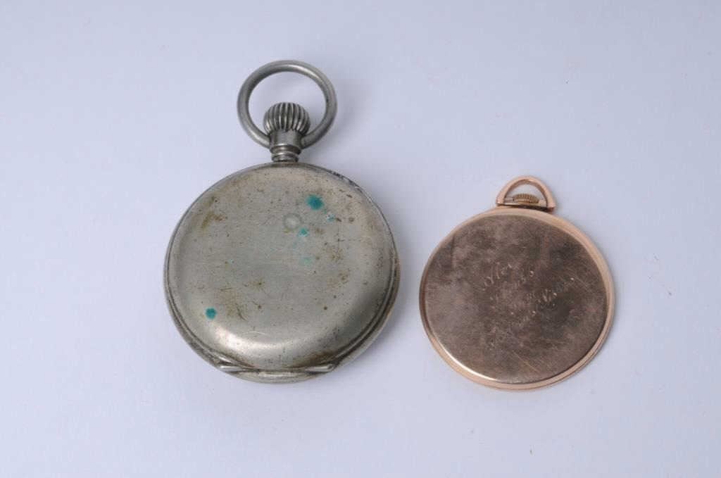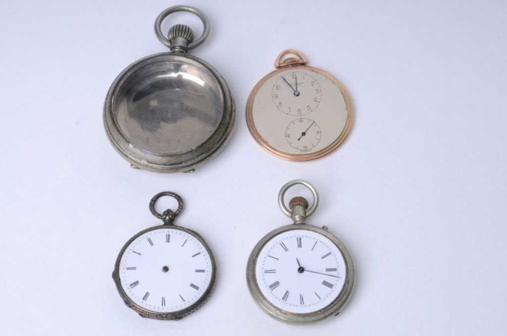 Lot of 3 parts watches; one inscribed on the backside “Alex Thanks From Andrews Sisters”; and a nickel silver case only for a pocket watch. Est.: $100-$200.