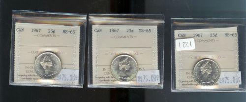 Lot of 3 pieces; all 1967 ICCS MS-65PQ , fully struck with strong lustre.