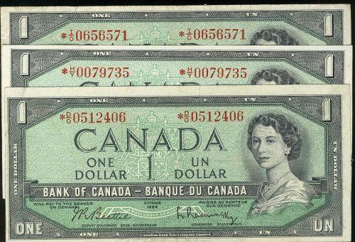 Lot of 3 scarce replacement 1954 $1 notes BC-37bA including *D/O, *I/O, *H/Y. Grades vary from about VF to EF.