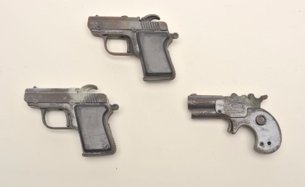 Lot of 3 small metal toy pistols; poor condition. Est.: $10-$20.