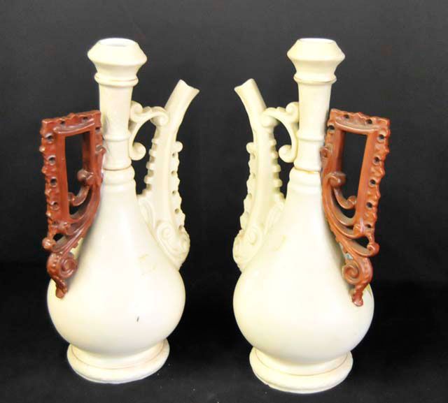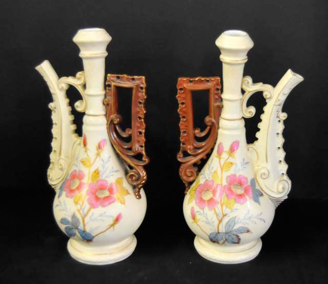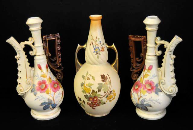 2- Carlstadt ewer form vases, approx. 10.75" H. 1- Rudolstadt vase, approx. 11" H. Please read our terms of sale.