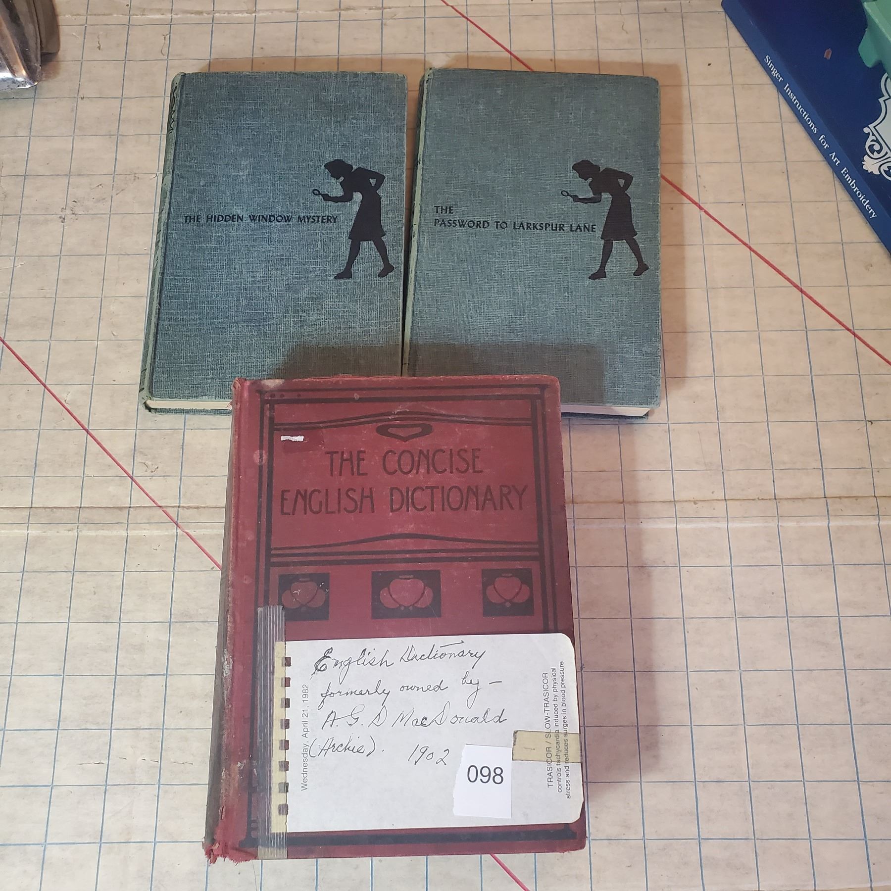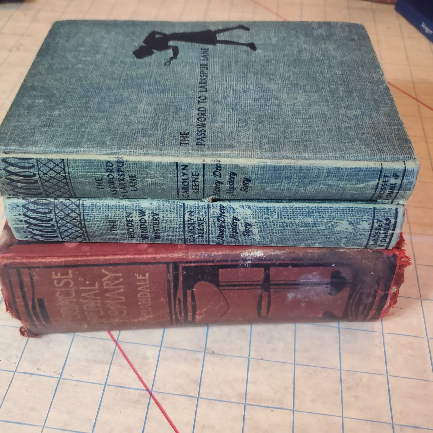 Lot of 3 vintage books 2 very old Nancy Drew (Carolyn Keene), Concise Dictionary first edition