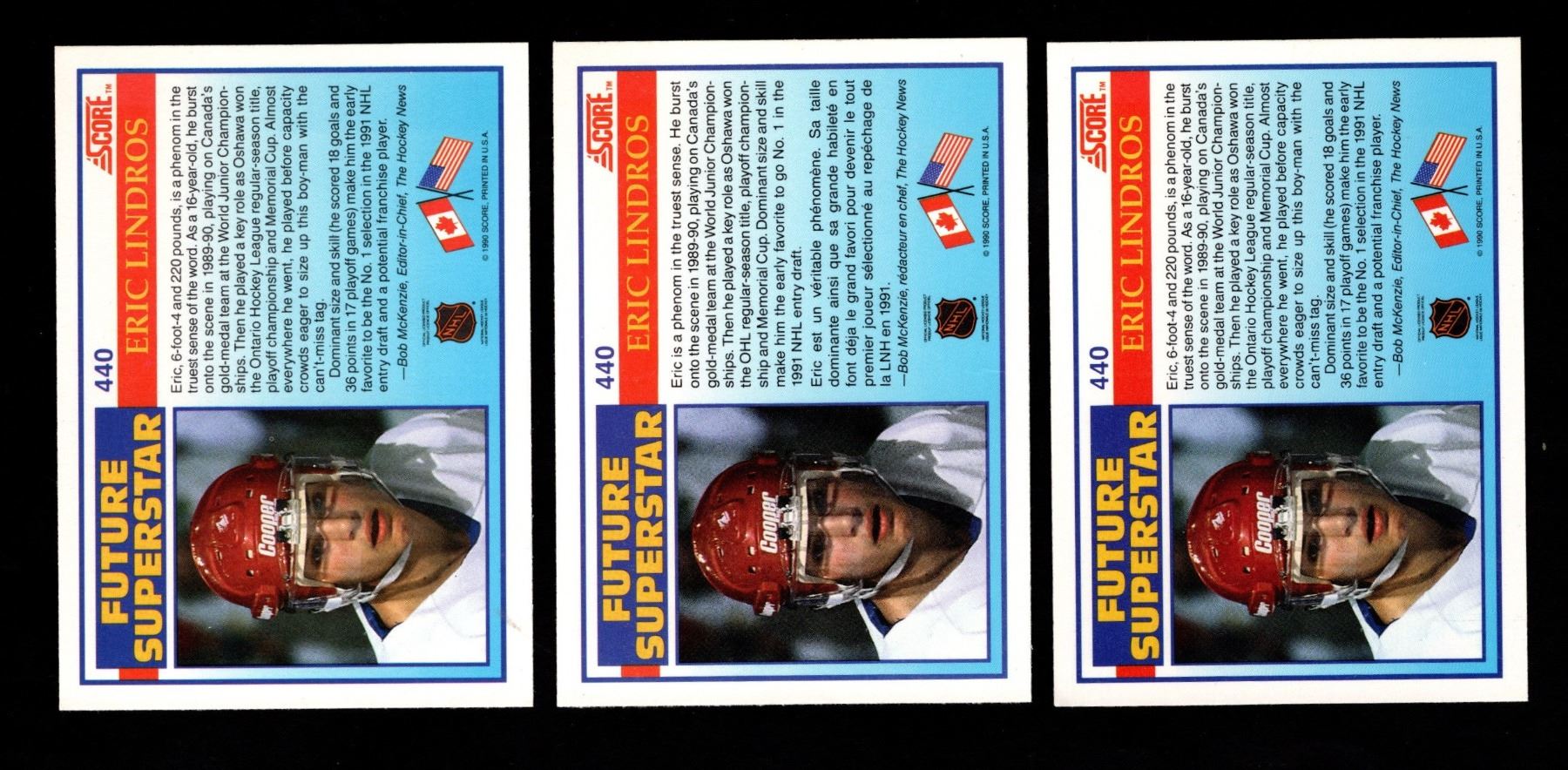 Lot of 3 90-91 Score Eric Lindros rookie cards, NMT-MT!