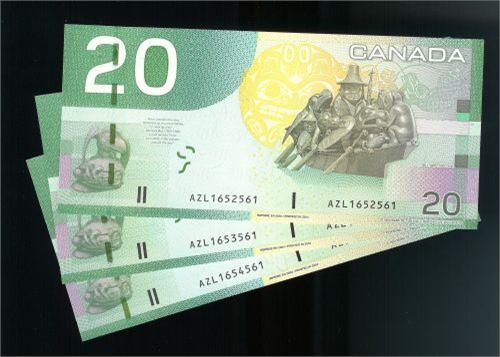 Lot of 3 x RADAR notes All BC-64as 2004 $20 AZL1652561, AZL1653561, AZL1654561. Notes are Choice Unc.