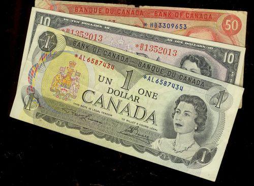 Lot of 3 x replacement notes including a 1954 $10 BC-40bA *B/D1352013 EF+, 1973 $1 BC-46aA *A/L6587434 EF and a 1975 $50 *H/B3309653 Fine with a blue pen mak and a few nicks.