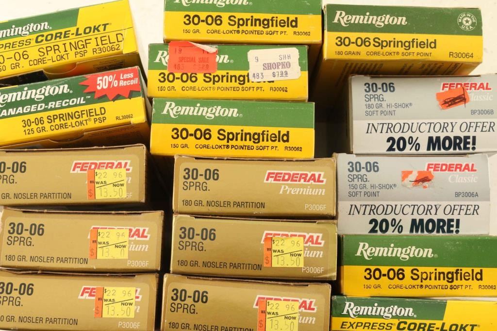 Approx. 300 rounds of 30-06 ammo in boxes by various makers.