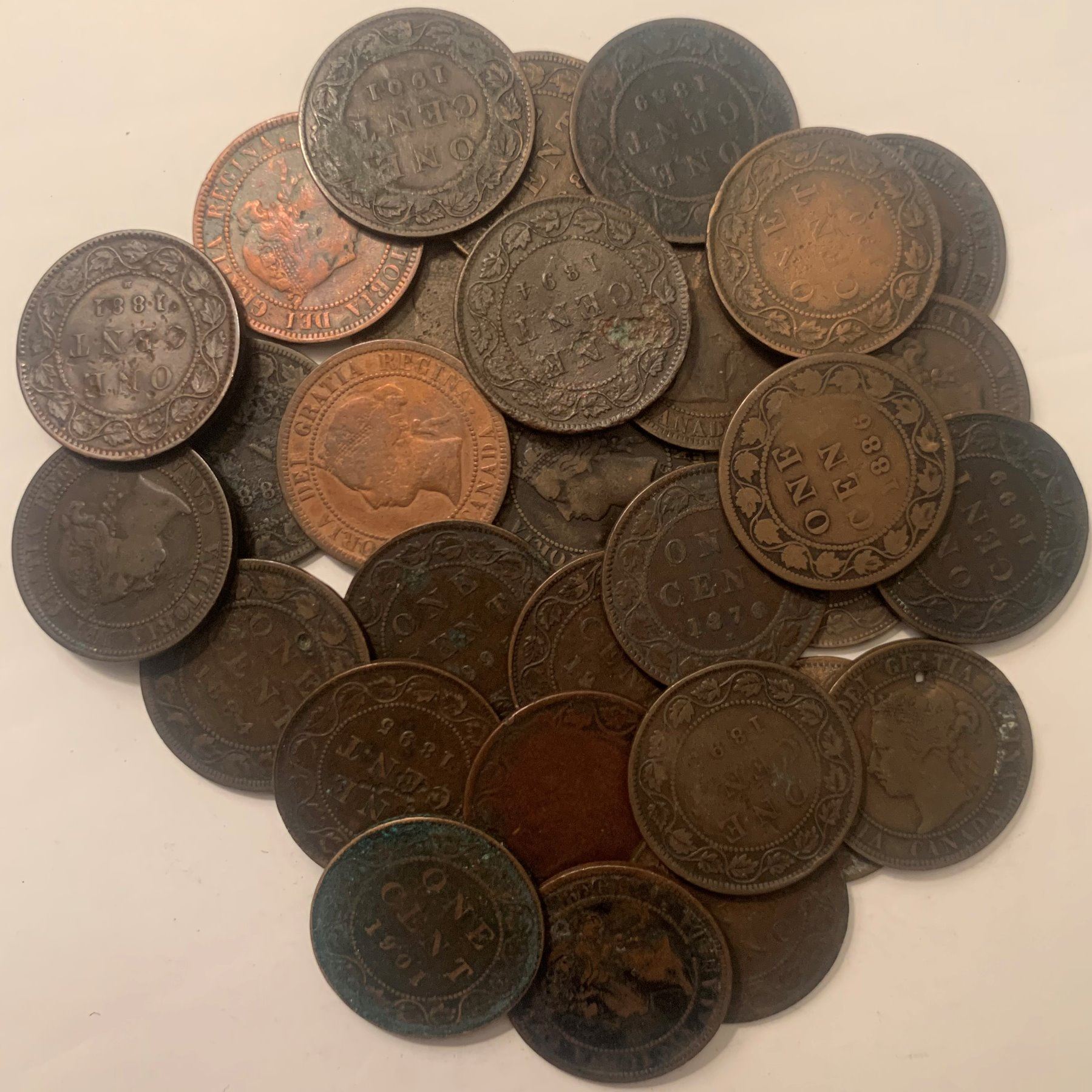 Lot of 30 Canada One Cent 1 Penny Queen Victoria Large cent