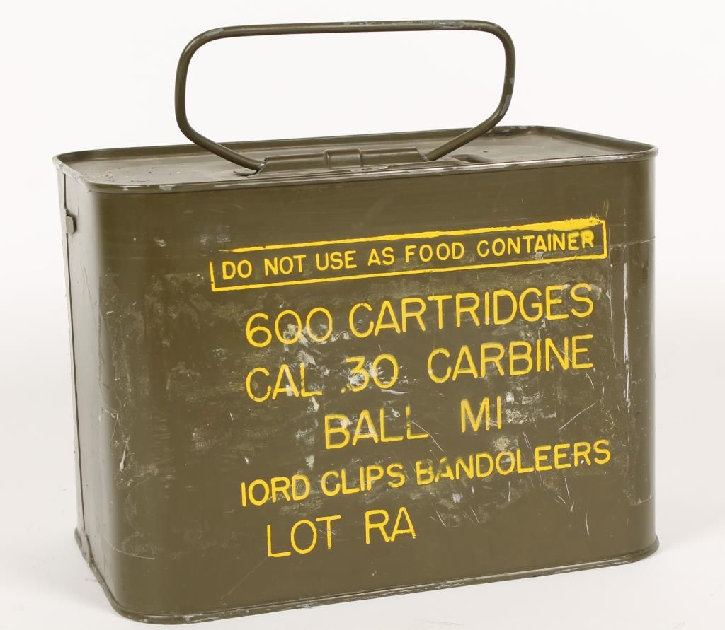 In sealed can of (600) rounds on 10 round stripper clips. With bandoleros.