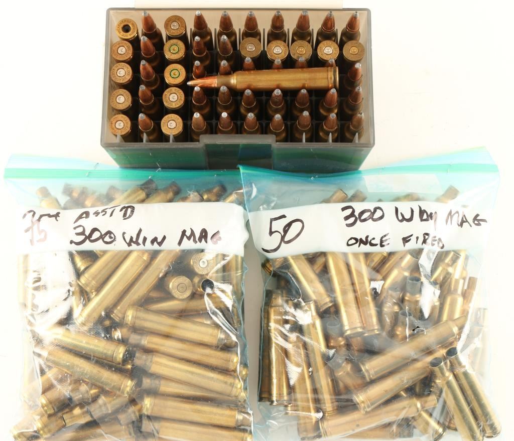 Including 75 assorted .300 Win Mag Brass, 50 .300 WBY Mag Brass once fired, 75 .300 Military Brass, and 36 Loaded