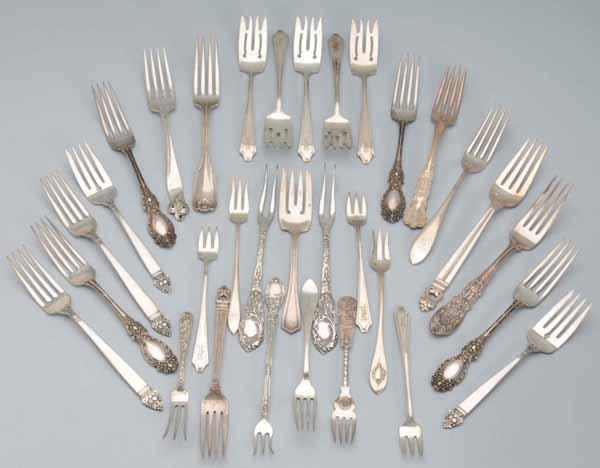 Description Weighs 34 troy ounces. Includes dinner, salad, pickle and olive forks. Condition (Excellent).