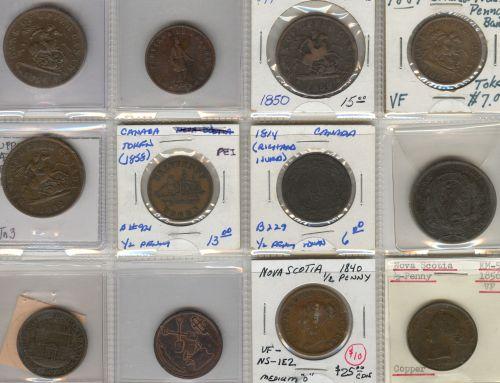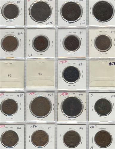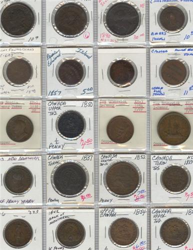 Lot of 32 Pre-Confederation Tokens from different province. Variable grade, to be viewed as unsearched. Sold as is no return.