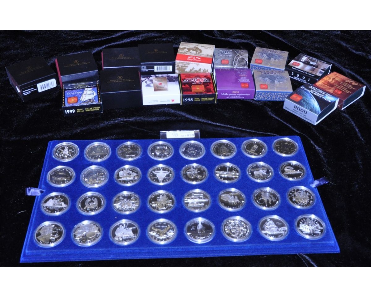 Lot of 32 RCM Silver dollars. Dates include: 1971 - 2000. 1997 Flying loon and 1999 Older persons special editions are included. Some original cases are included. 32 Pcs.