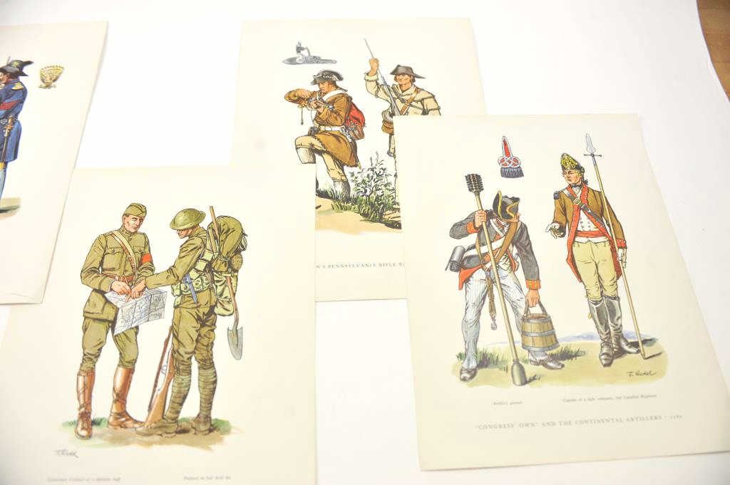 Lot of 32 military prints by artist Fritz Kredel. The lot includes fine prints spanning the Revolutionary War to Korea. A nice lot by a noted artist. Est.: $125-$250.