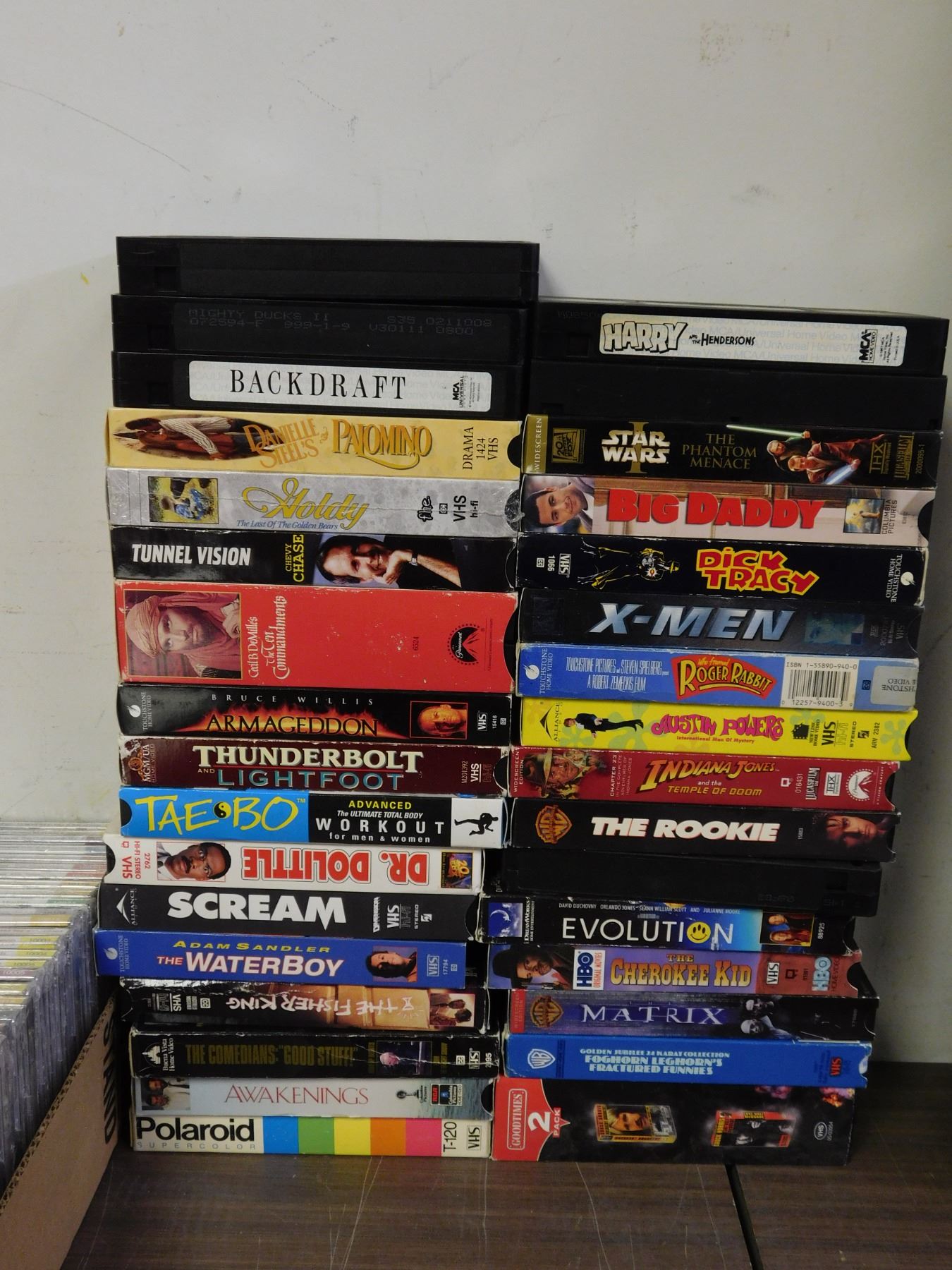 Lot of 33 VHS Tapes Movies Assorted Star Wars, Matrix, Lost Boys, Scream, X-Men, Etc