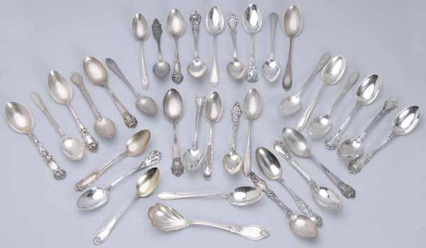 Description Weighs 26.3 troy ounces. Includes one cushion-shaped spoon and one engraved spoon with a floral motif and basket weave band. Condition (Very Good). Size Largest: 6" L.