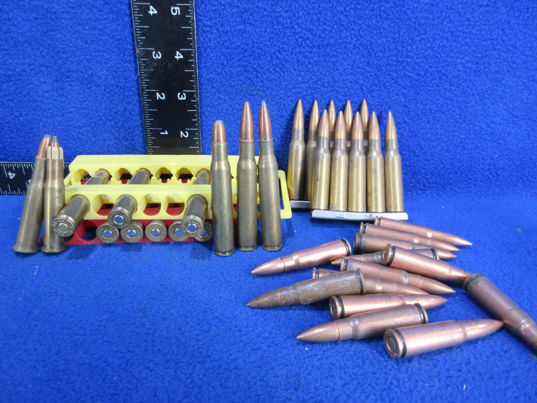 Lot of 37 Misc. Cartridges (Pick Up or Ship by UPS Only) - 30-06 x 6, 30-30 x 8, 7.62X39 x 13, 7.62X51 x 10 (On Stripper Clips)