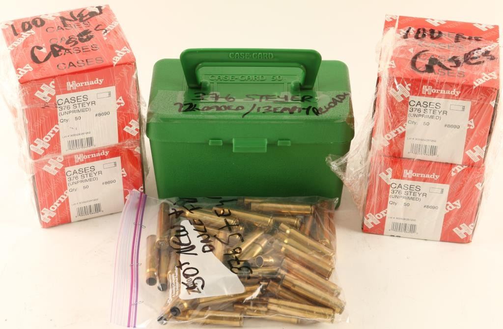 Including 200 Hornady .376 Steyr Cases, Approx. 50 .376 Brass, 35 .376 Loaded/Empty Reloads