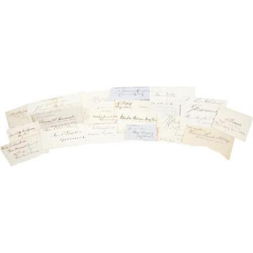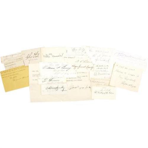 <B>Large Lot of 38 Civil War Signatures,</B></I> including: <B>Napoleon Jackson Tecumseh Dana, Robert Anderson, Nelson A. Miles, Benjamin Huger, John McCauley Palmer, Absalom Baird, J. Warren Keifer, Edward D. Townsend, John Pope, John B. Turchin, Richard Yates, Clarence R. Edwards, Thomas M. Anderson, Winfield Scott Hancock, Lovell H. Rousseau, William S. Rosecrans, Roger A. Pryor, Wladimir Krzyzanowski, Roy O. West, Stephen A. Hurlbut, Cadwallader C. Washburn, Henry W. Halleck, Charles A. Dana, Nathaniel P. Banks, George W. Getty, Edward Canby, Lorenzo Thomas, William F. Barry, Walter Damrosch, Albert Payson Terhune, Harrison Gray Otis, Elbert Hubbard, P.C. Harris,</B></I> Medal of Honor winner <B>John Tweedale</B></I>, and four others.<BR><BR><b>Shipping:</b> Flat Material, Small (<a target="_blank" href="http://www.heritageauctions.com/common/shipping.php">view shipping information</a>)
