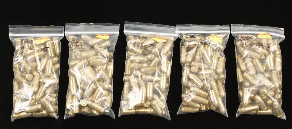 5 bags of .380 Auto 95 Gr FMJ cartridges. PMC cases. Unknown total quantity.