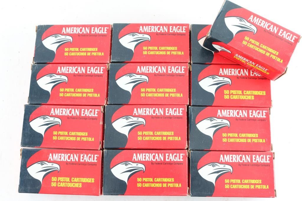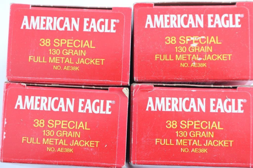 American Eagle ammo in factory boxes. 1) Approx. 550 rnds of .38 Spl FMJ. 2) Approx. 70 rnds of .357 Mag. jacketed Sp.