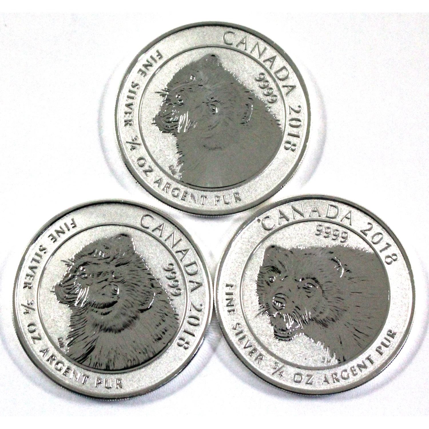Lot of 3x 2018 $2 3/4 oz. Fine Silver reverse proof Bear's. (2.25 oz. total) (Tax Exempt) 3pc