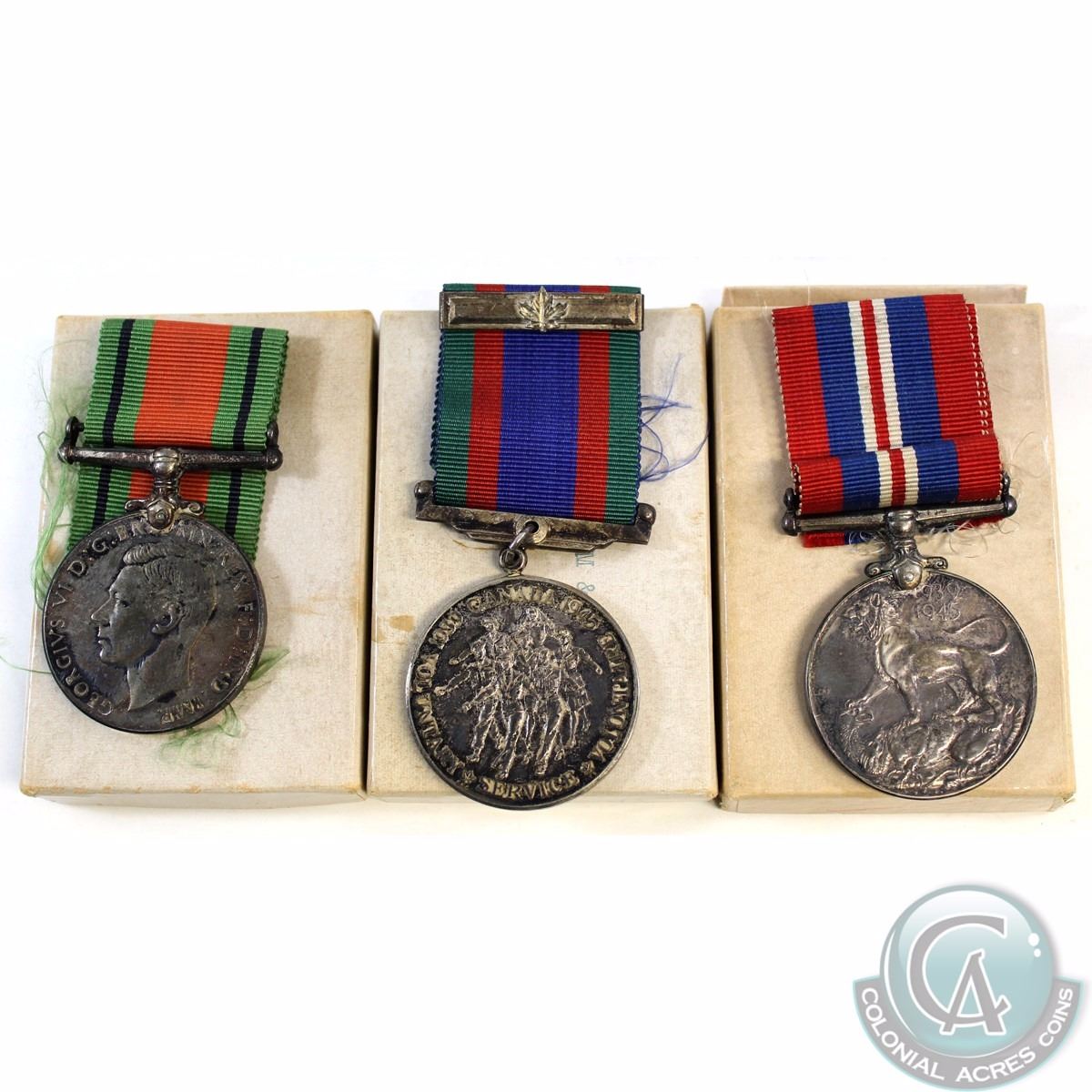 Lot of 3x Canada World War II Sterling Silver Medals with Ribbons Still Attached and in Original Boxes. You will receive the Lion Medal, the Defence Medal & the Canadian Voluntary Service Medal. 3pcs