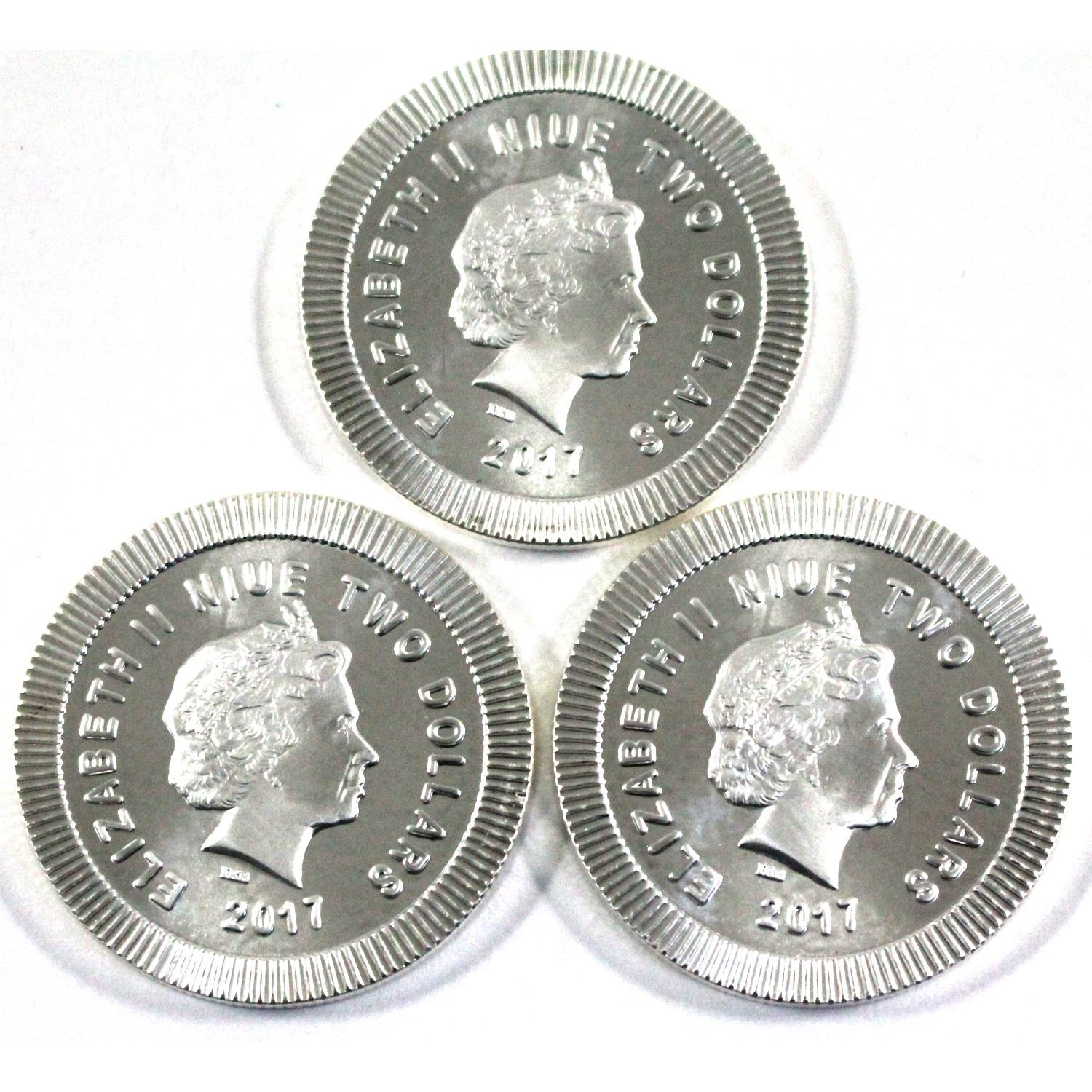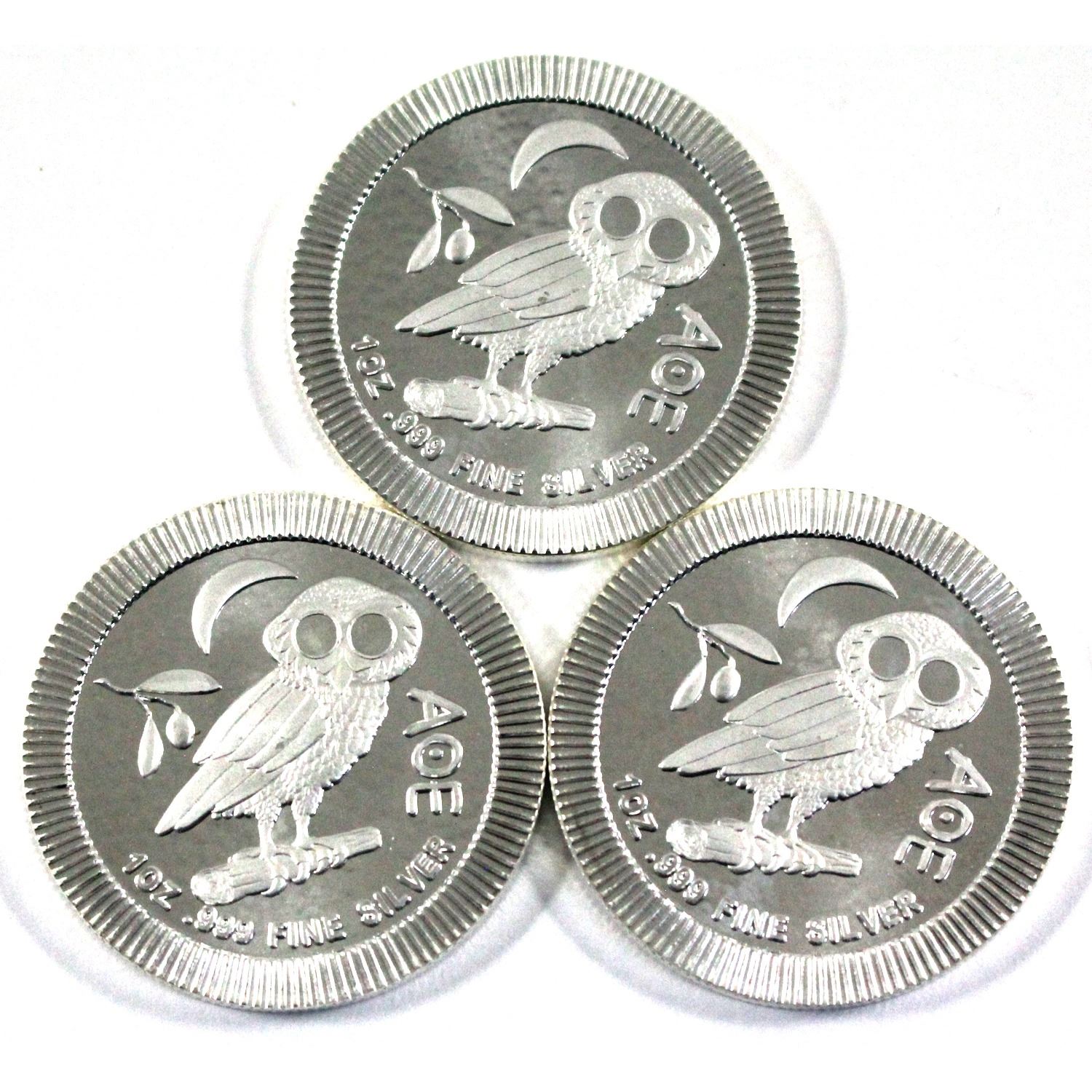 Lot of 3x Niue $2 1oz Fine Silver rounds featuring Ancient Greek Owl "AOE" design. .999 Fine 3pc