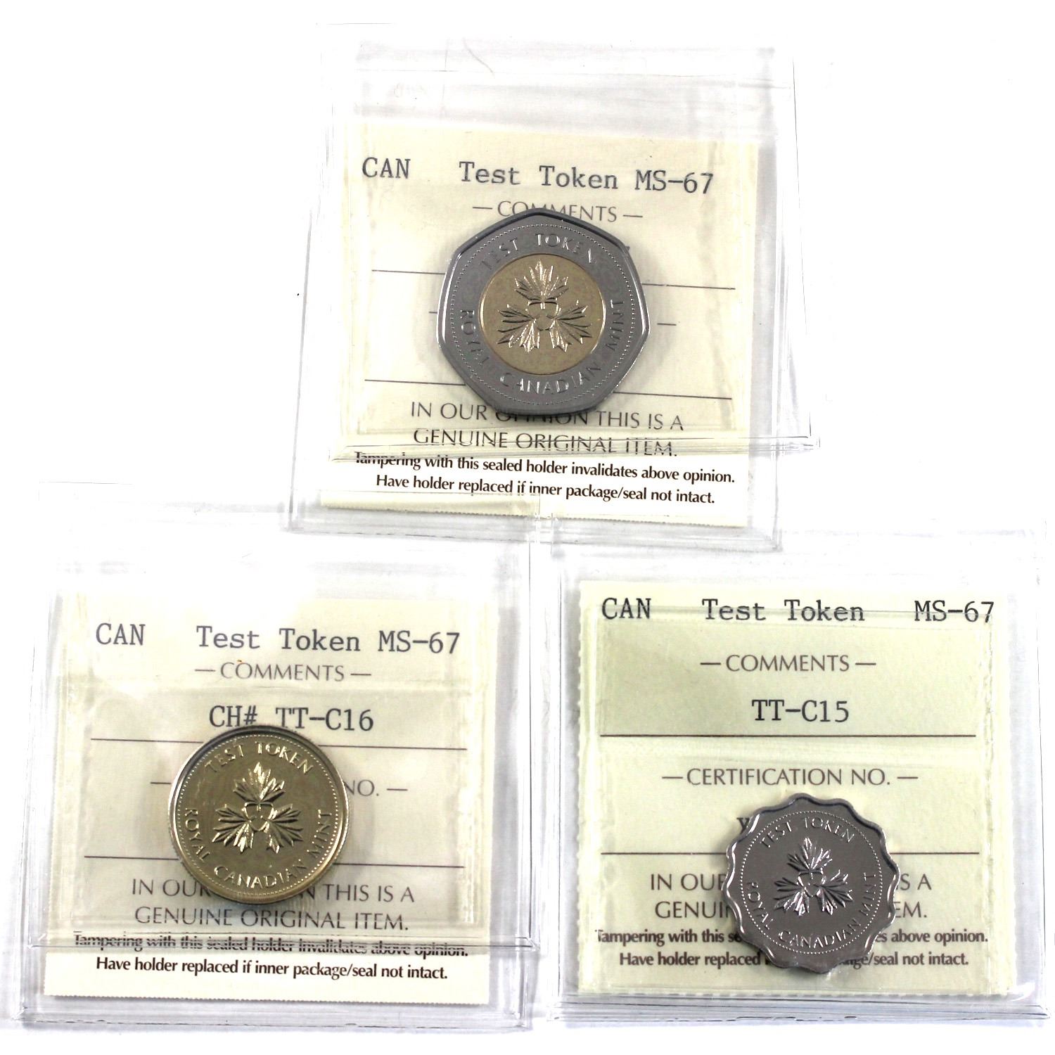 Lot of 3x RCM Concept Test Tokens. Lot includes: TT-C17, TT-C16, & TT-C15. All coins in pristine condition ( From 2006 set). 3pcs