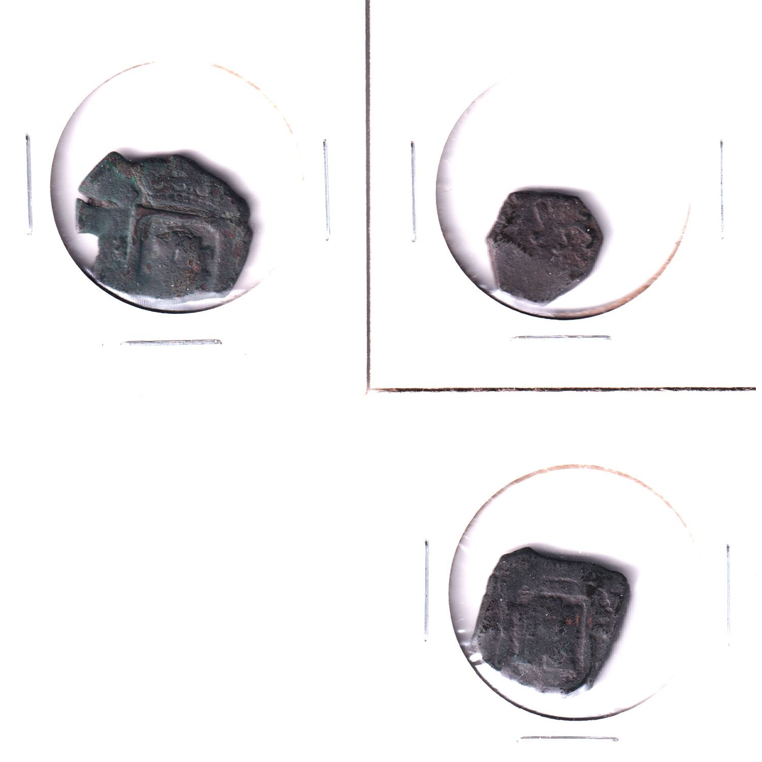 Lot of 3x Unidentified Ancient Stamped Copper Coins of Irregular Shapes. 3Pcs