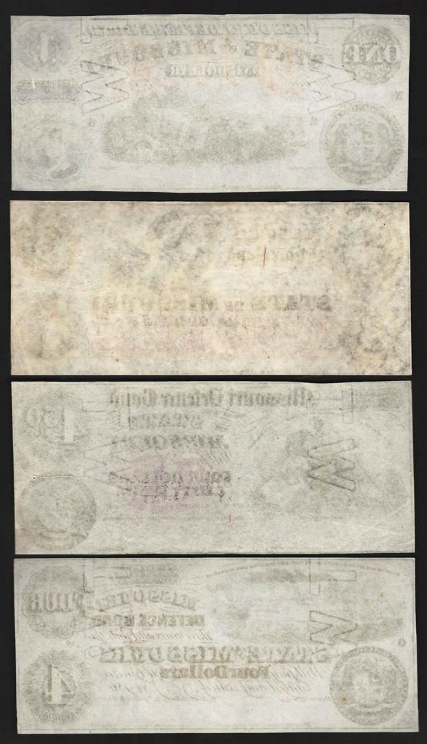 One Lot of (4) 1860's State of Missouri $1/$3/$4/$4.50 Obsolete Bank Notes.