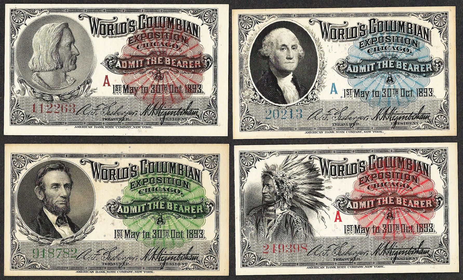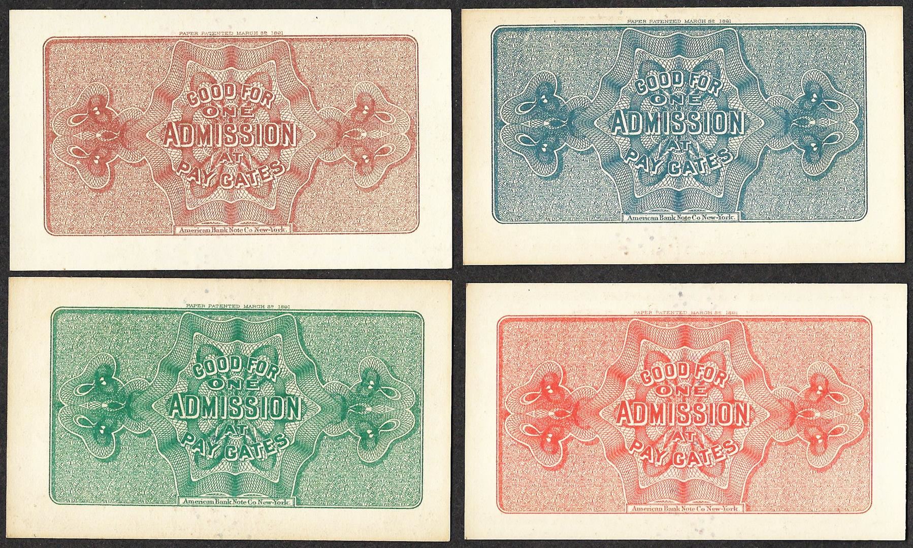 One Lot of (4) 1893 Columbian Exposition Tickets.