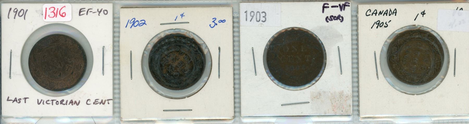 Lot of 4 (1901-03 and 1905) Canadian Large Pennies