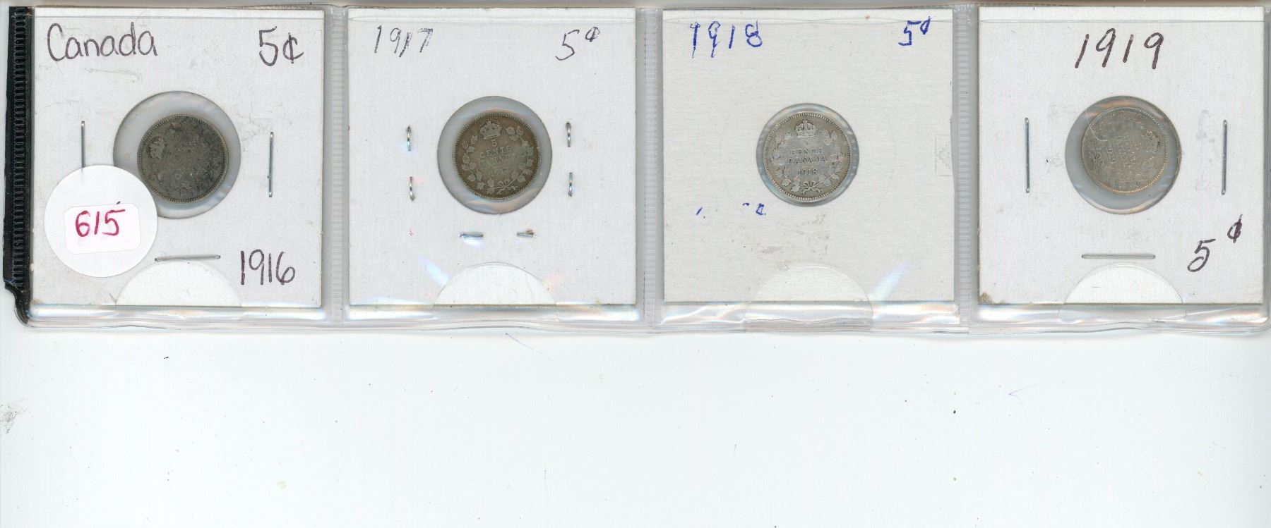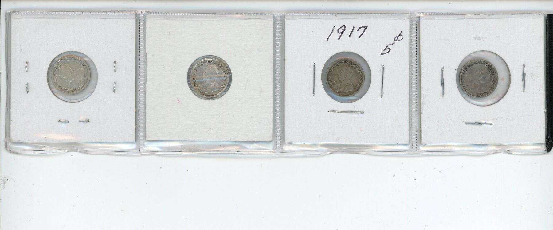 Lot of 4 1916-1918 silver Canadian small 5 cent coin