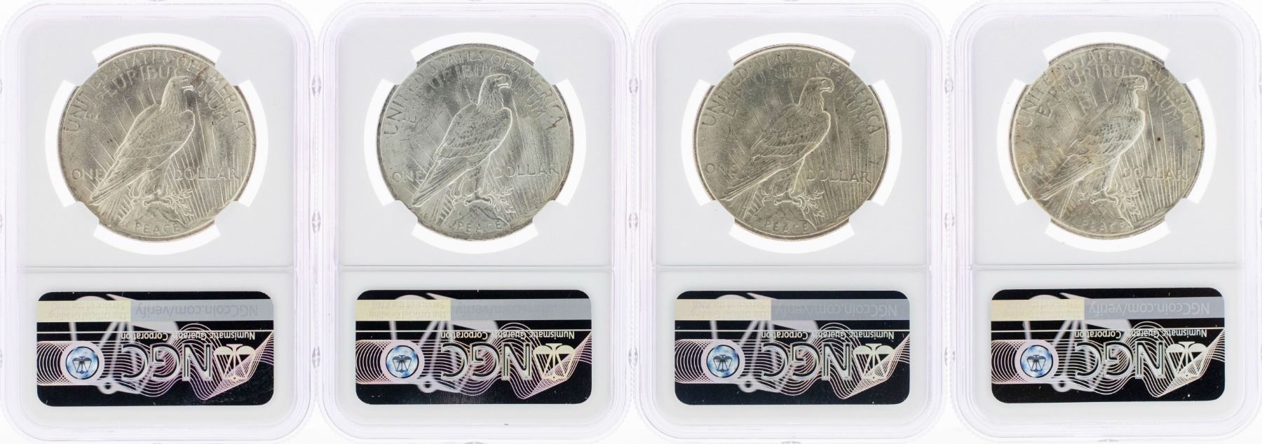 One Lot of (4) 1923 $1 Peace Silver Dollar Coins NGC MS63.
